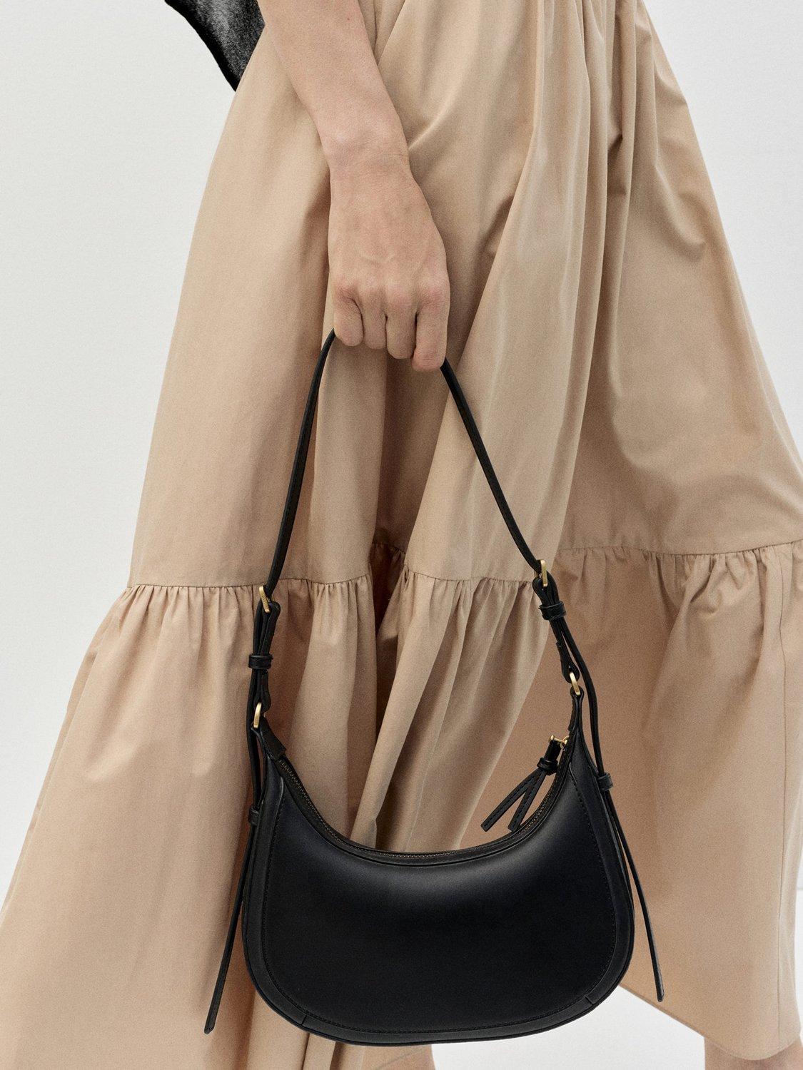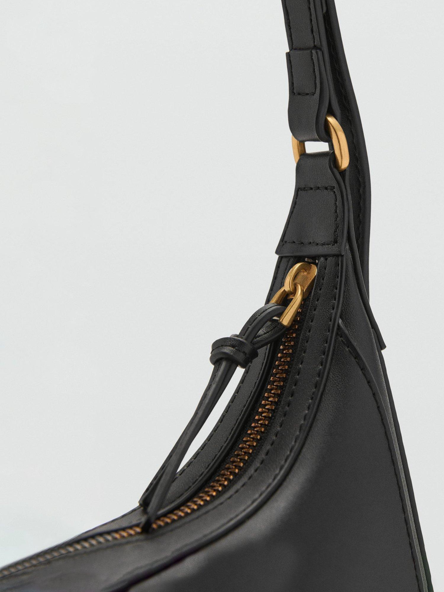 Mango’s shoulder bag reimagines everyday style with an adjustable buckle strap. In a sleek crescent shape, its plain design is fastened with a secure zip.