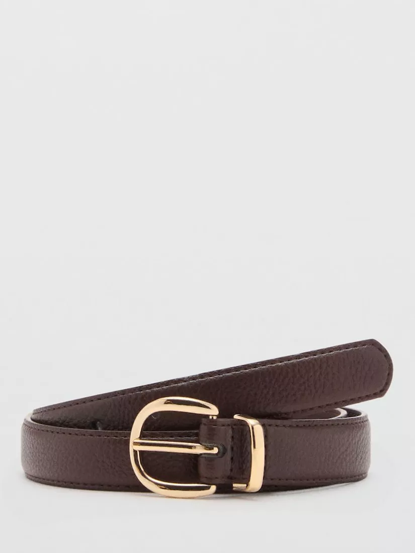 MangoLaminas Oval Buckle Belt, Dark Brown