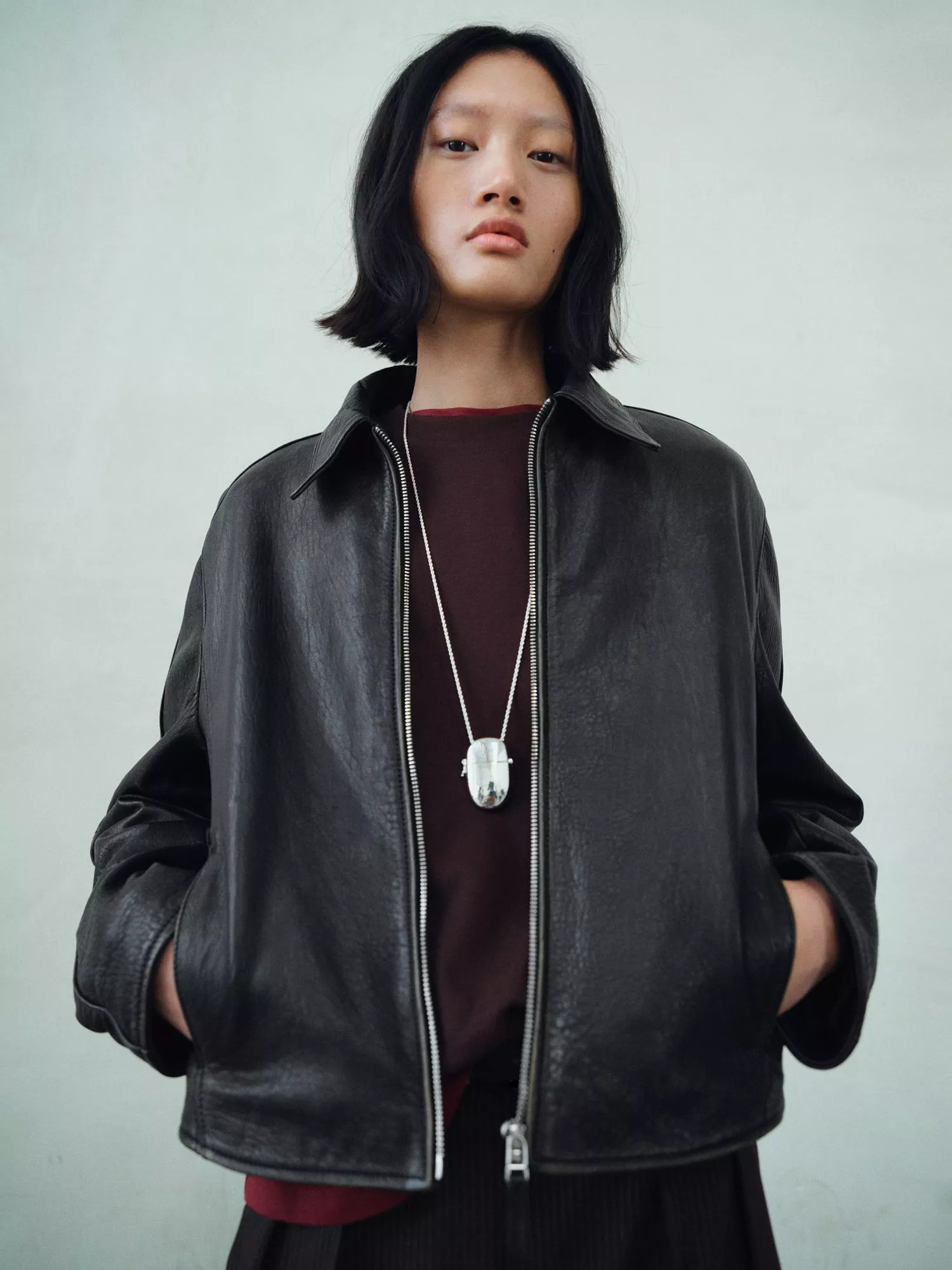 A leather jacket from Mango, designed for day wear. Soft to the touch and shaped for comfort, it keeps you looking sharp with a zip through the front.