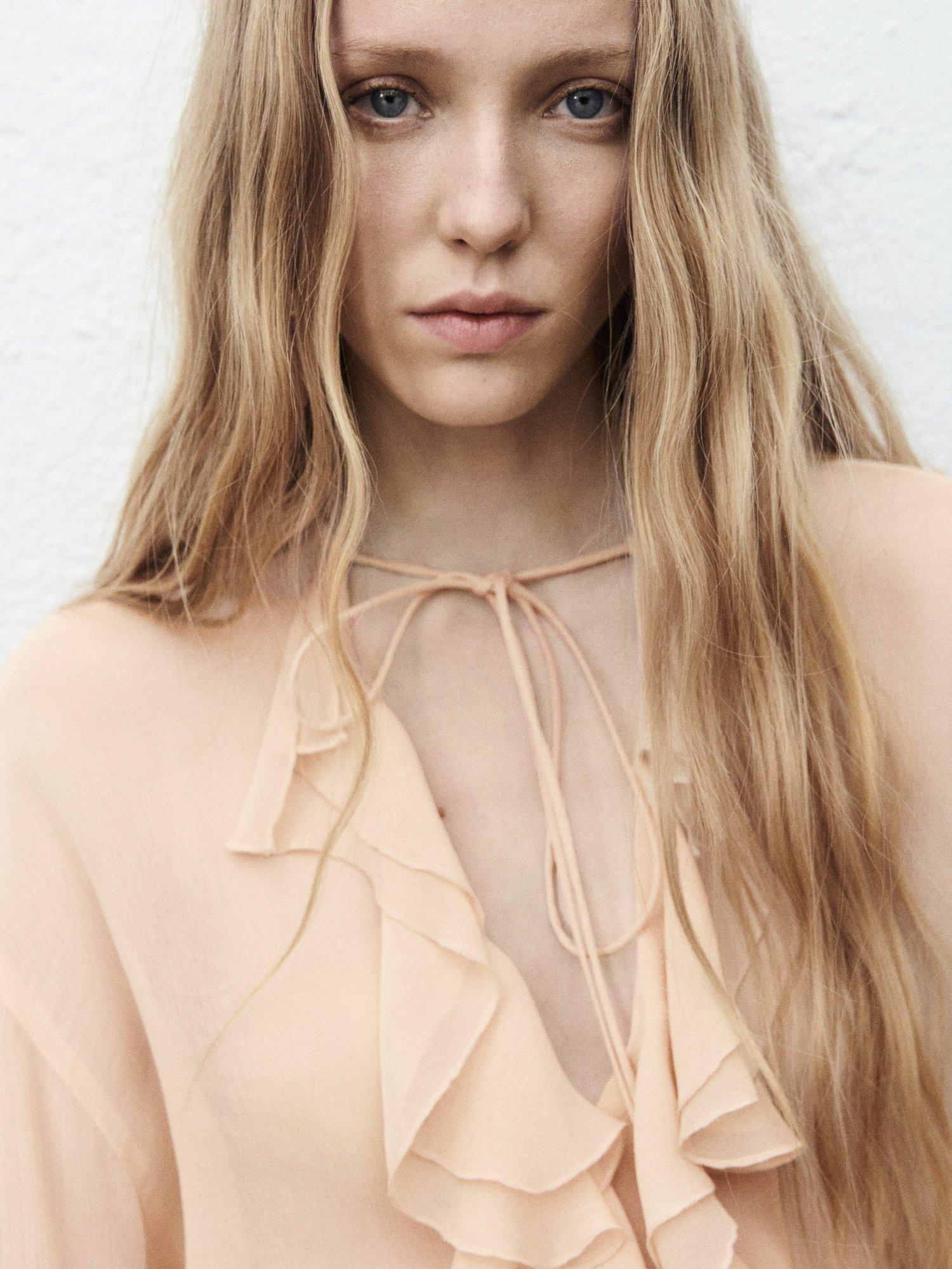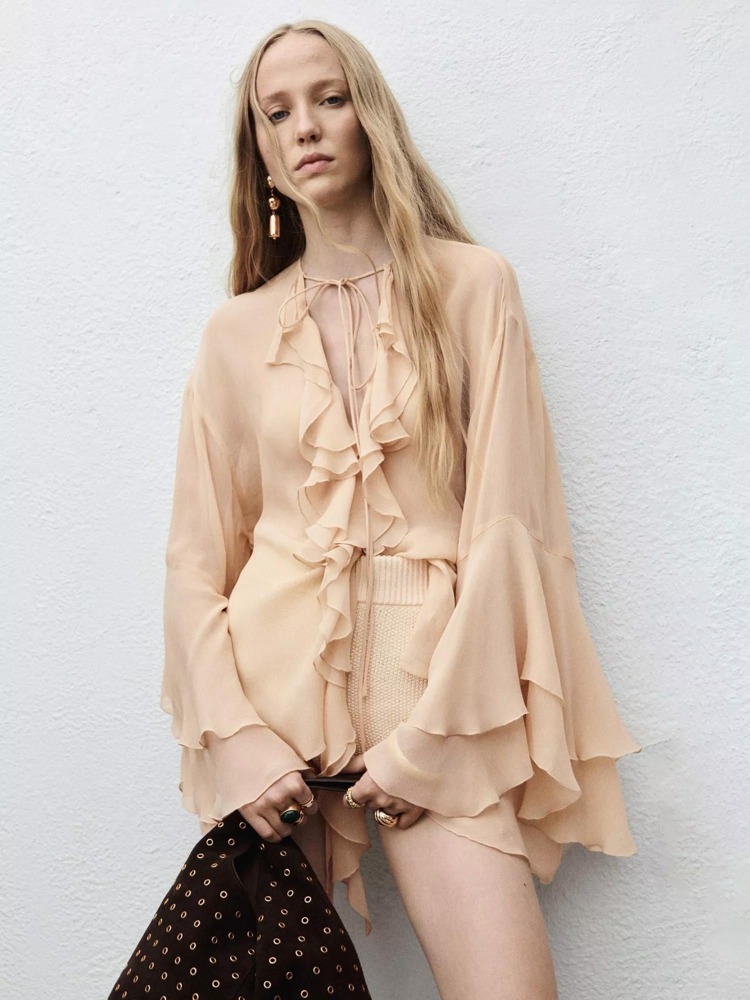 This long sleeve tie neck blouse brings comfort and flair to your day. Its textured viscose fabric feels light, while the playful neckline adds interest.