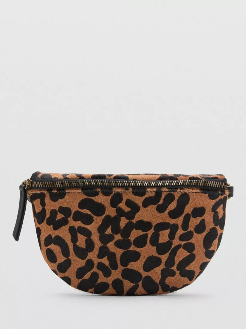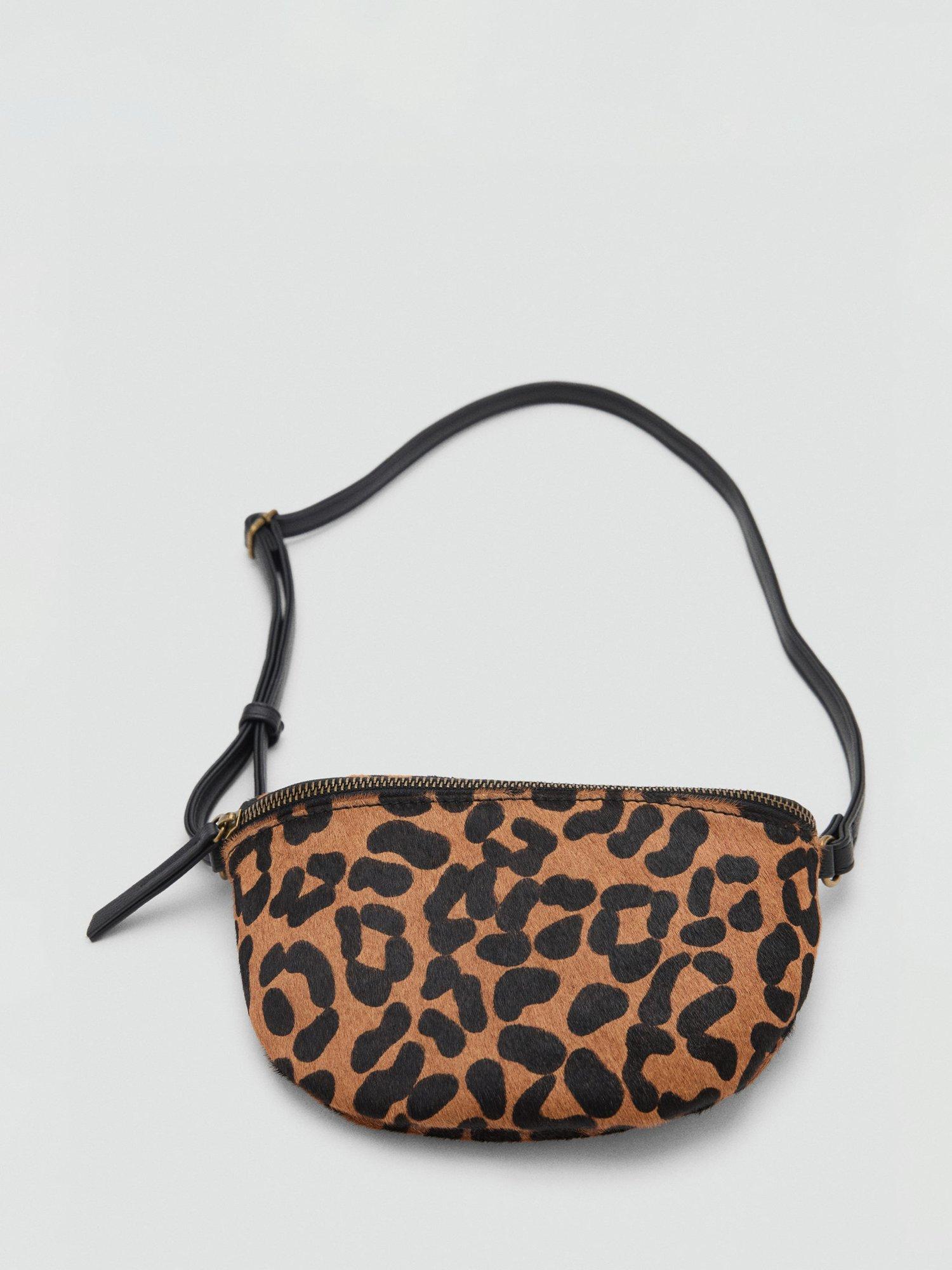 MangoLeather Leopard Print Crossbody Bag, Brown/Multi