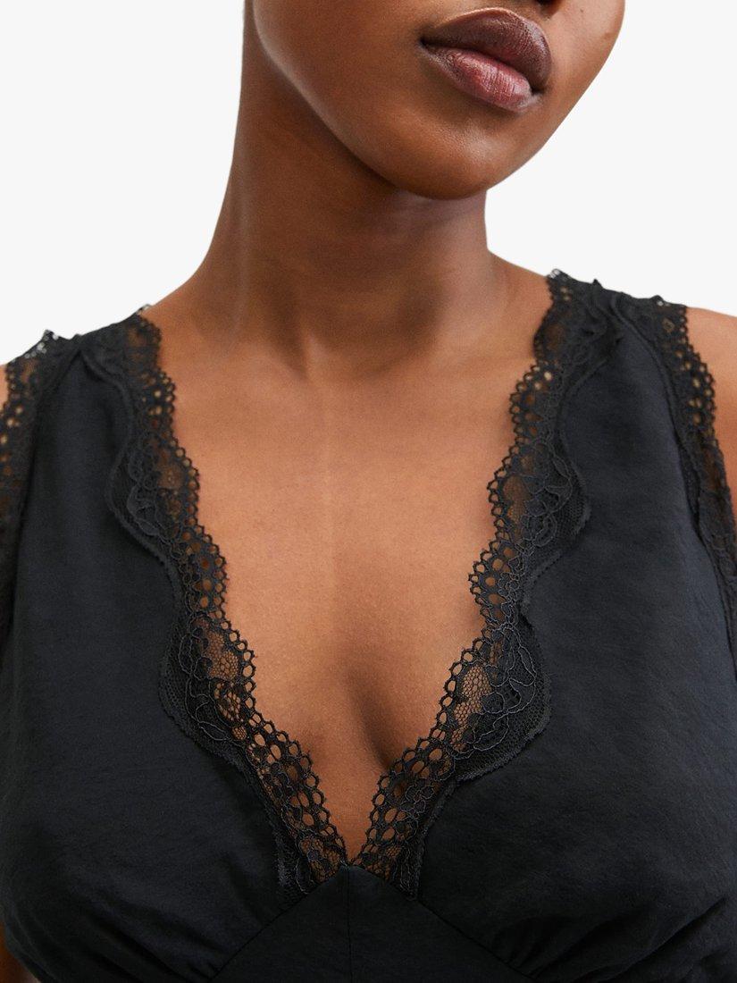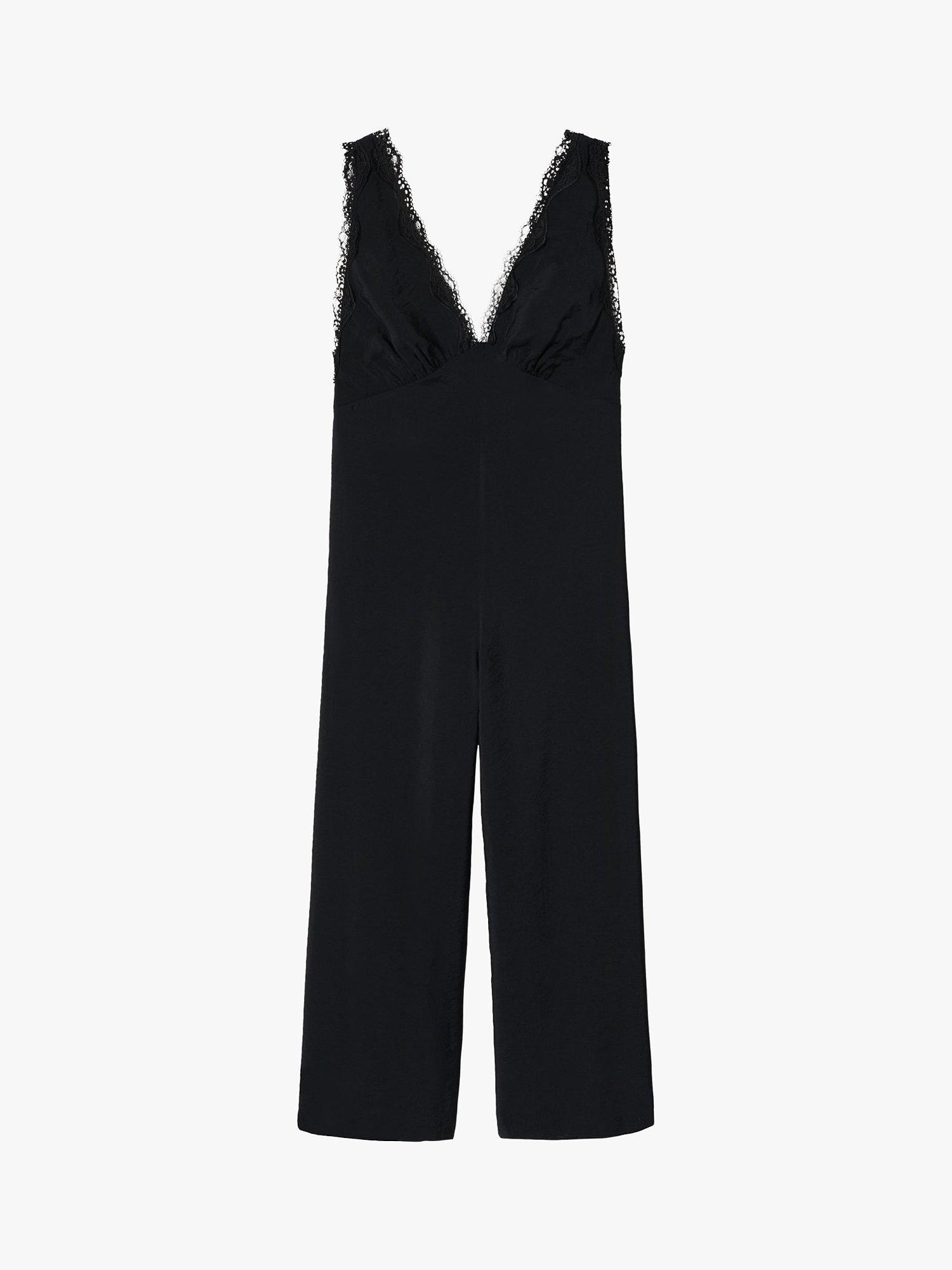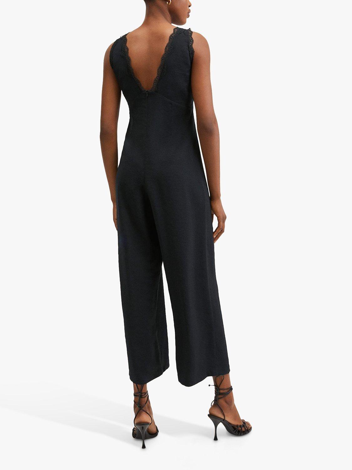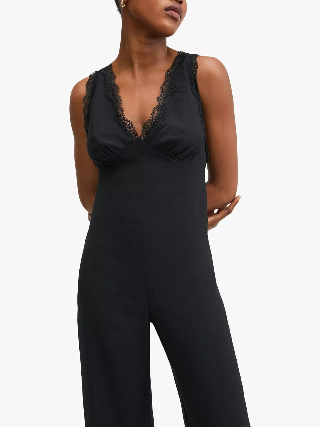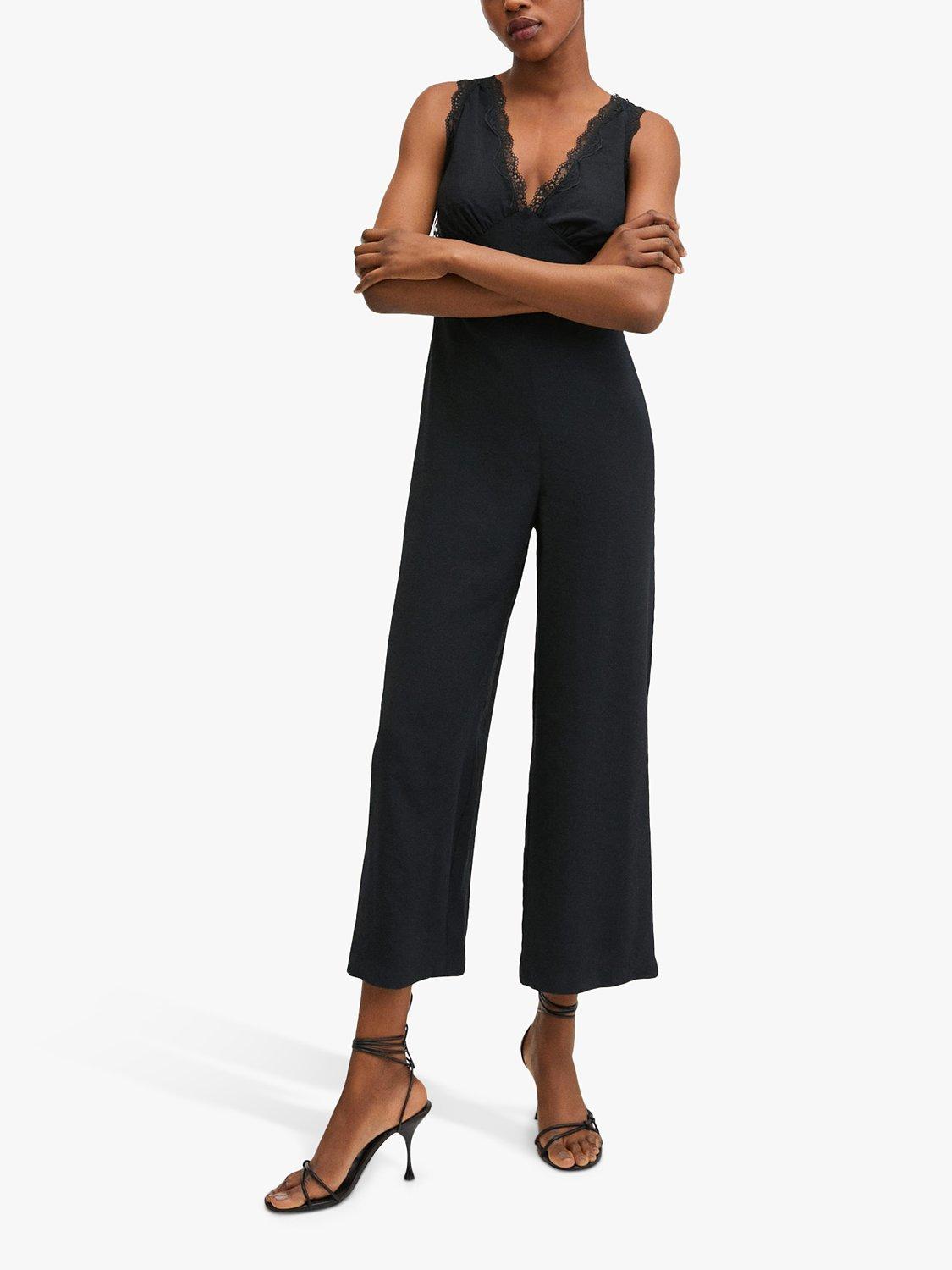 Framed with a flattering lace trim v-neck, this sleeveless culotte jumpsuit from Mango is shaped to a wide leg and is made from a robust blend that'll last the years.