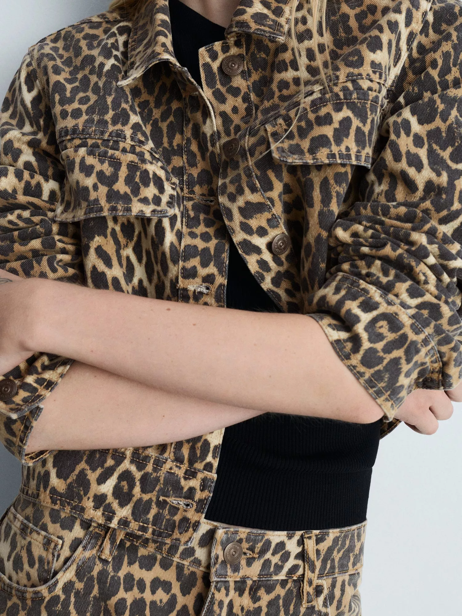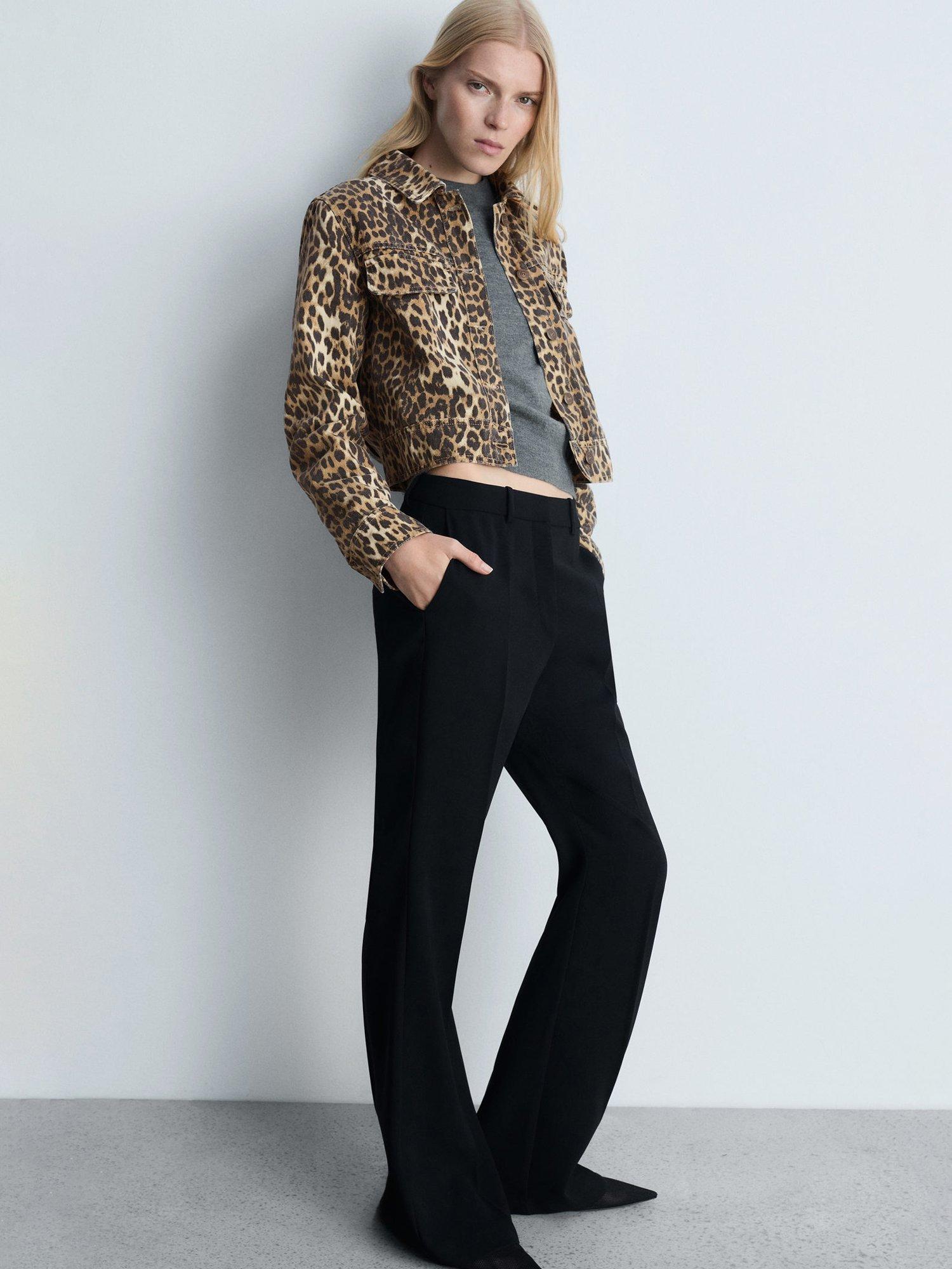The perfect transitional style, this denim jacket by Mango ends at the hip. Featuring a neat collared neckline and an all-over animal print (leopard, no less), it is made using pure cotton for a soft yet breathable feel.