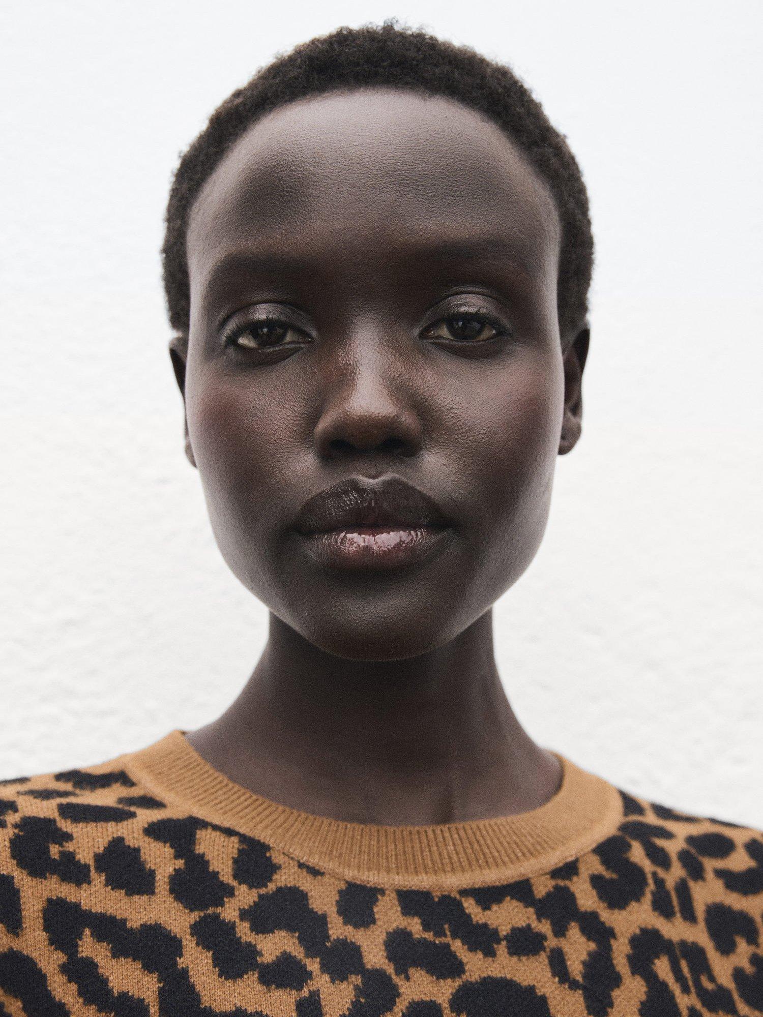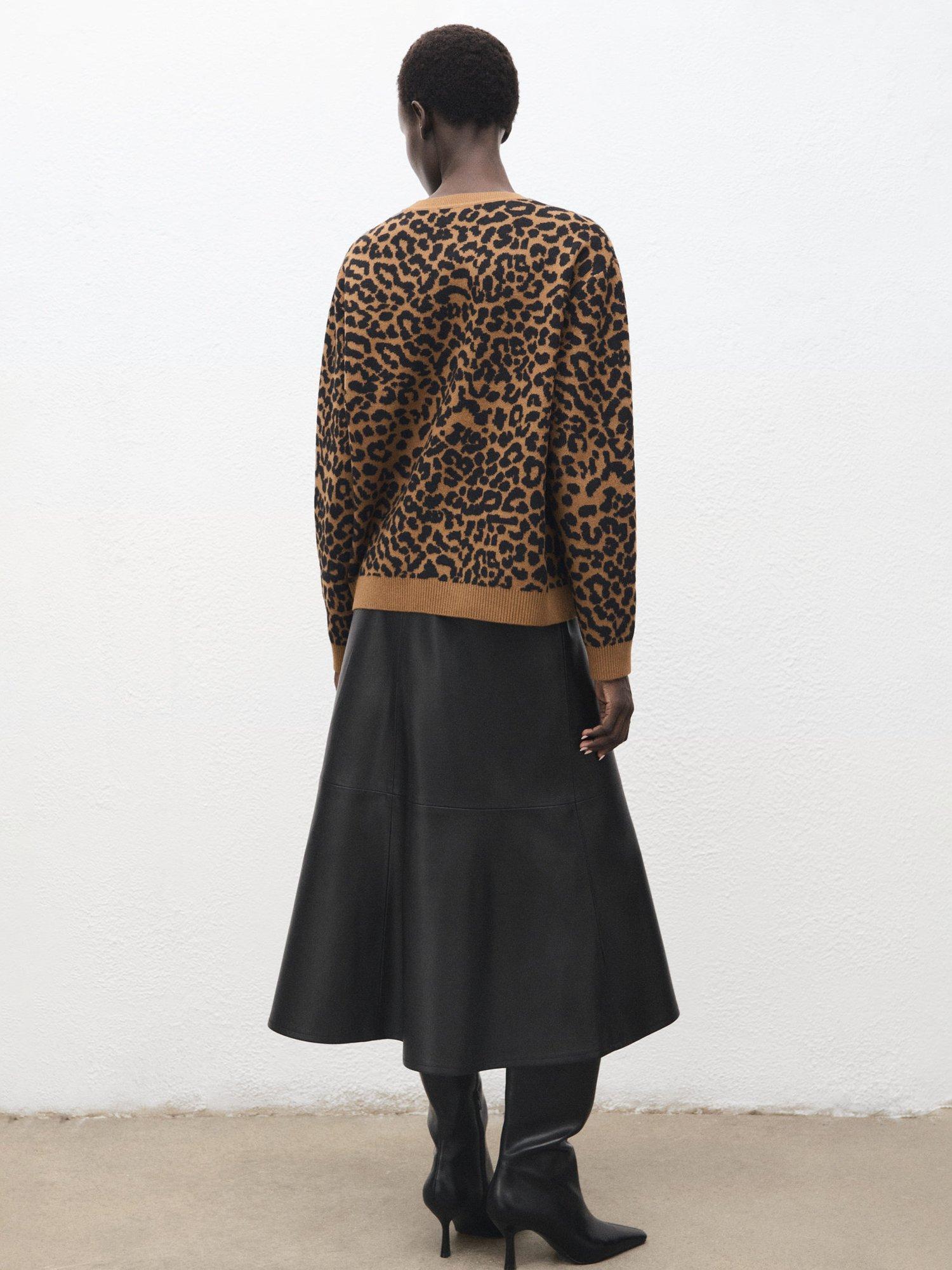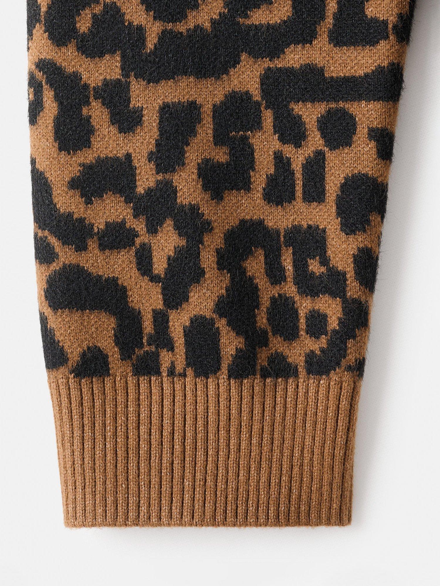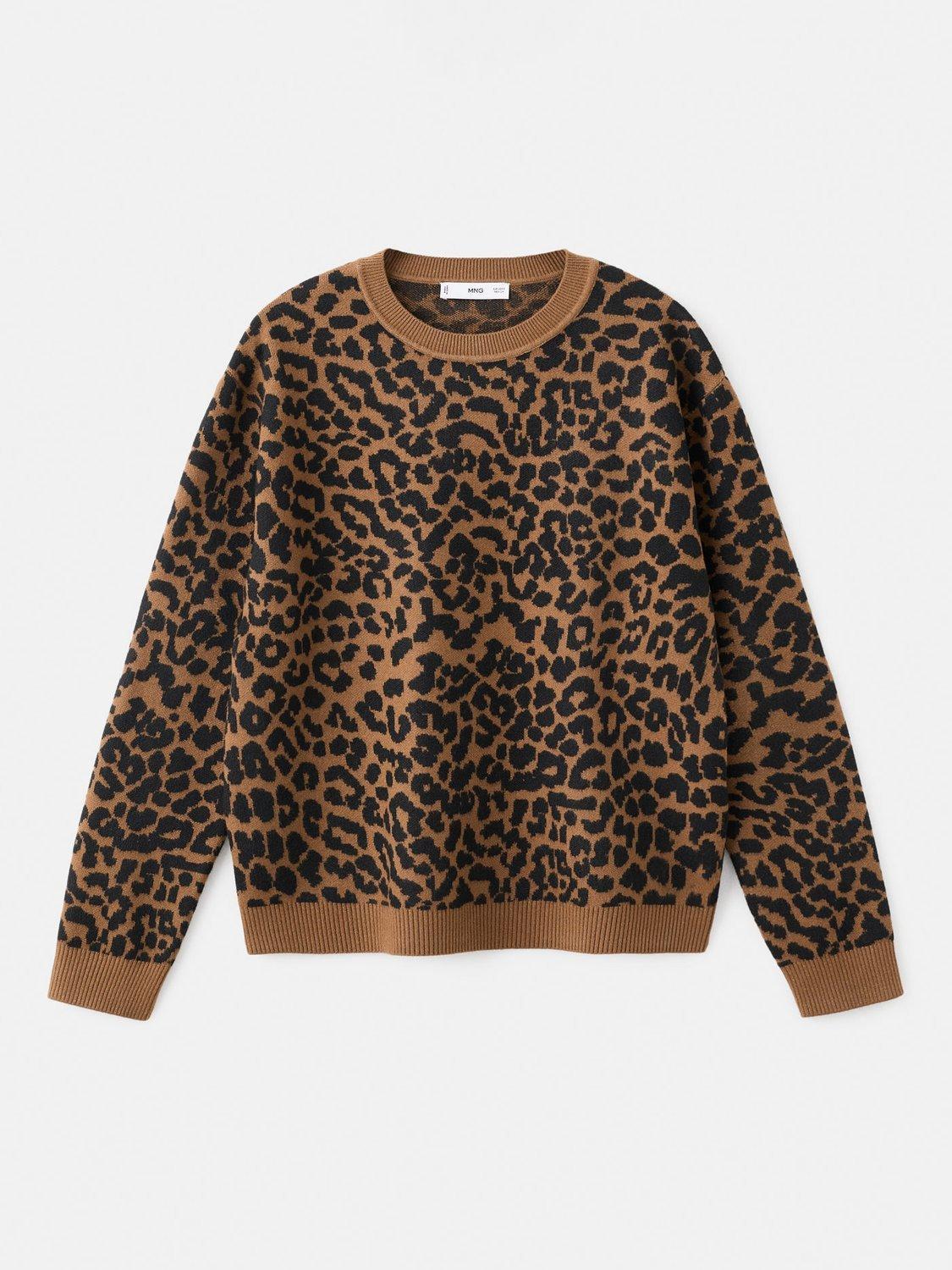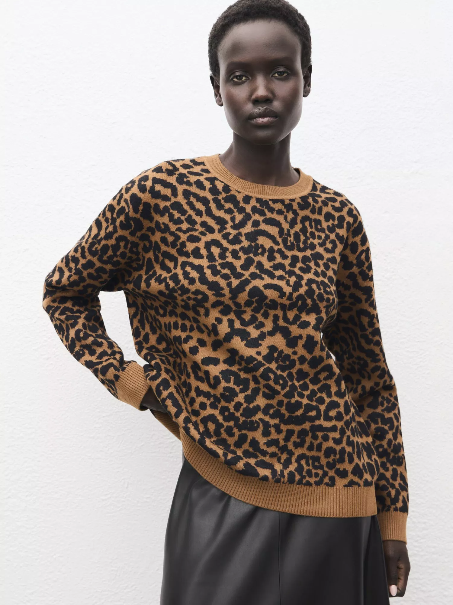 A medium-weight jumper. With a leopard pattern and round neck, the soft fabric and long sleeves keep you cosy and comfortable for whatever your day holds.