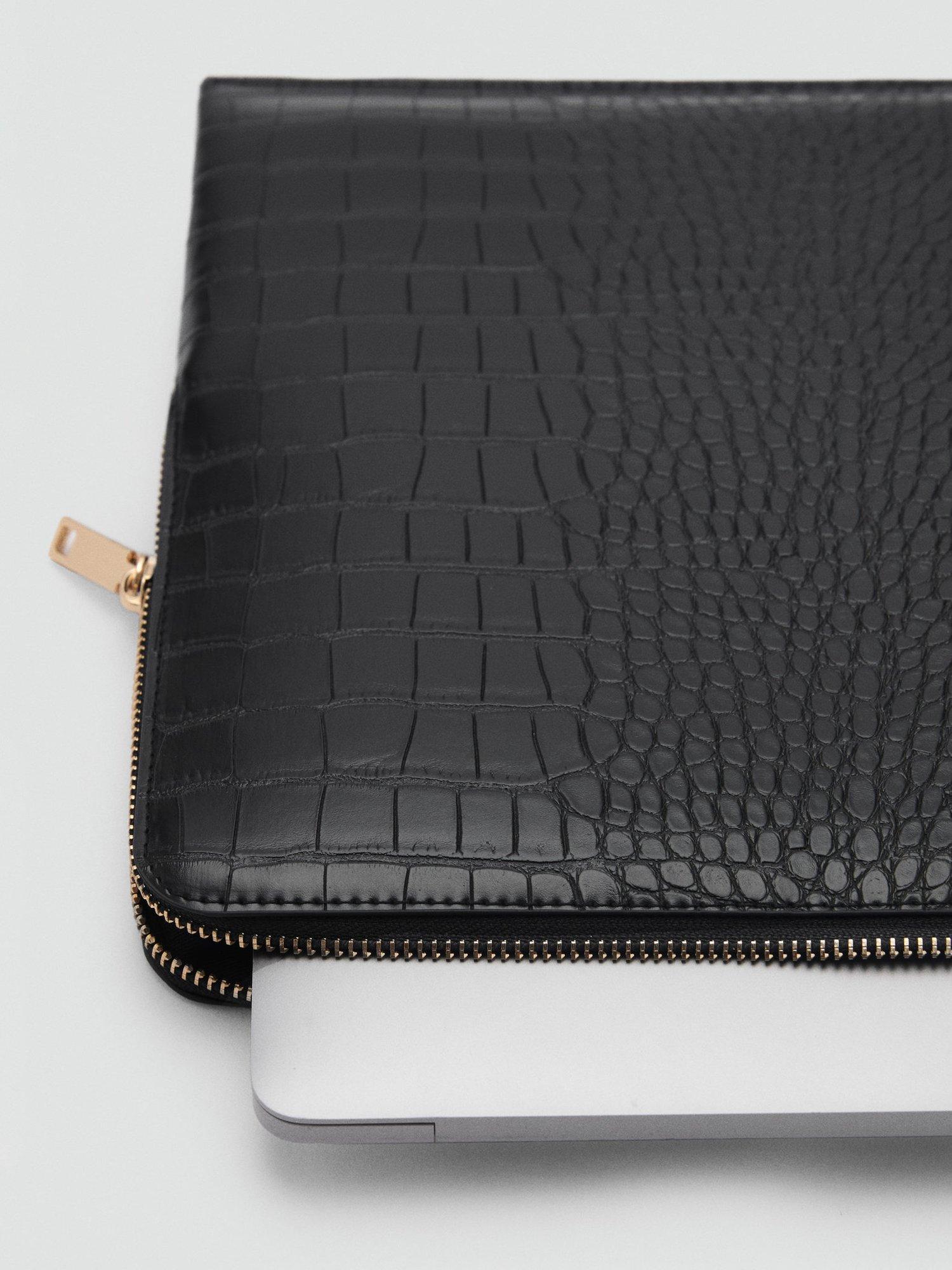 Made in croc effect faux leather, this laptop case from Mango features an inner lining with a pocket, a debossed logo and a zip-around closure.