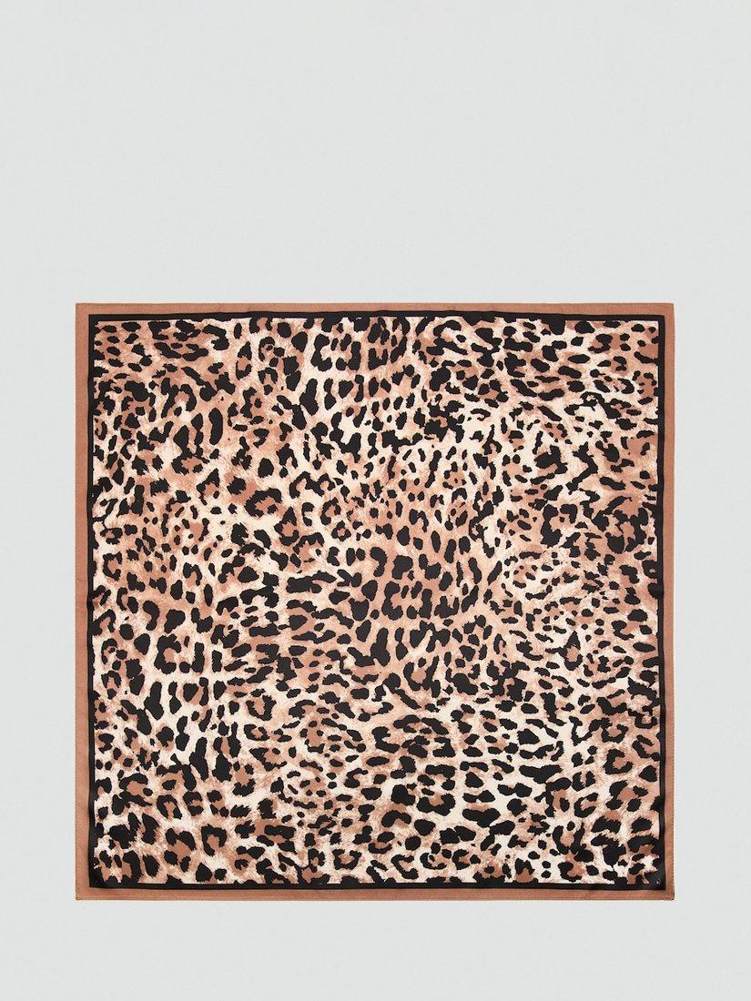 MangoLeopard Print Square Scarf, Brown