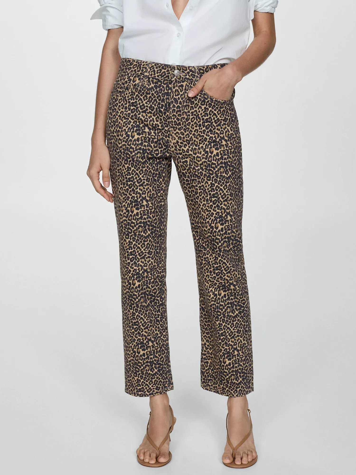 MangoLeopard Print Straight Cut Jeans, Brown/Multi