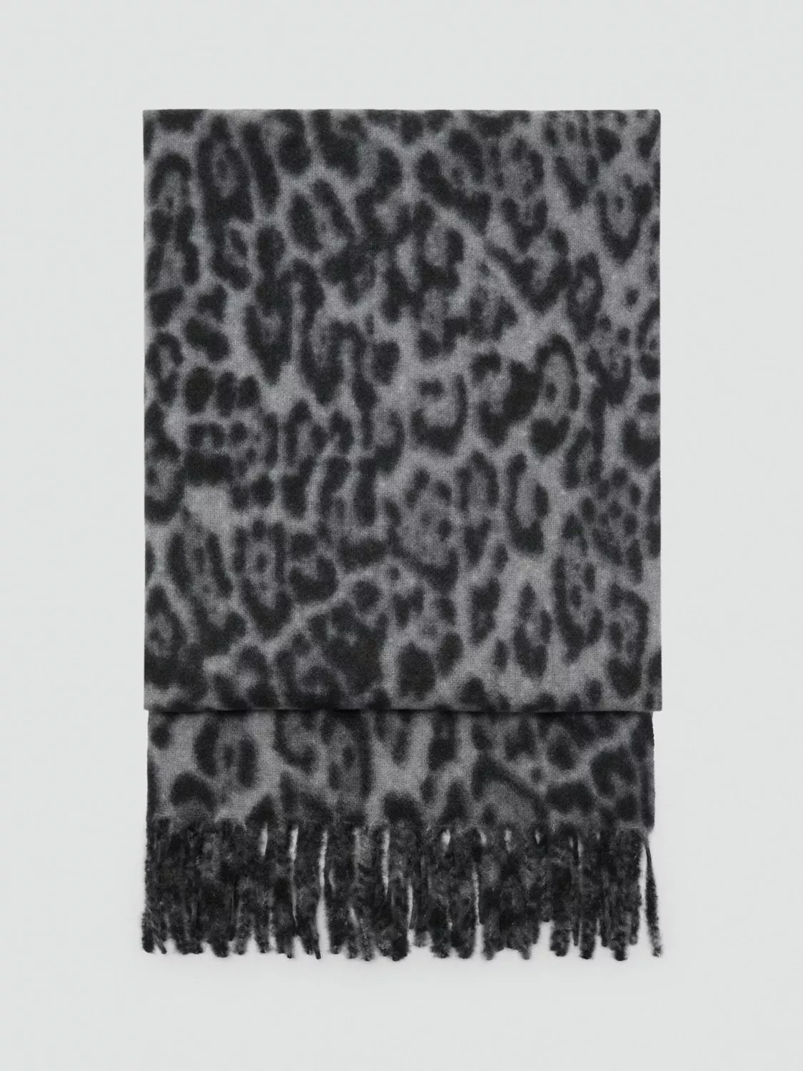 MangoLeoparda Leopard Print Fringed Scarf, Grey