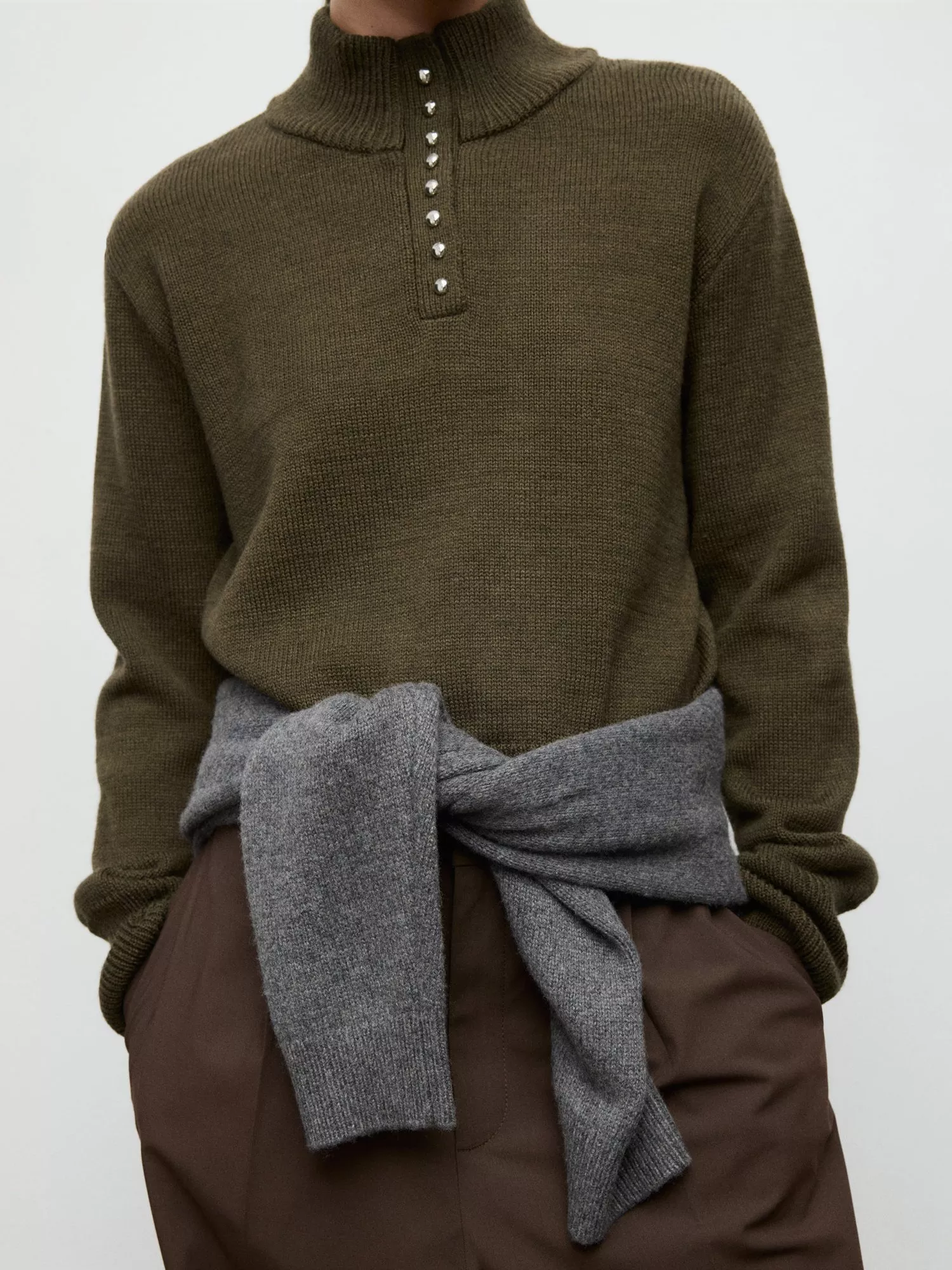 A button-detailed high neck jumper from Mango. Its medium-weight knit and classic long sleeves keep you comfortable, making it an easy choice for every day.