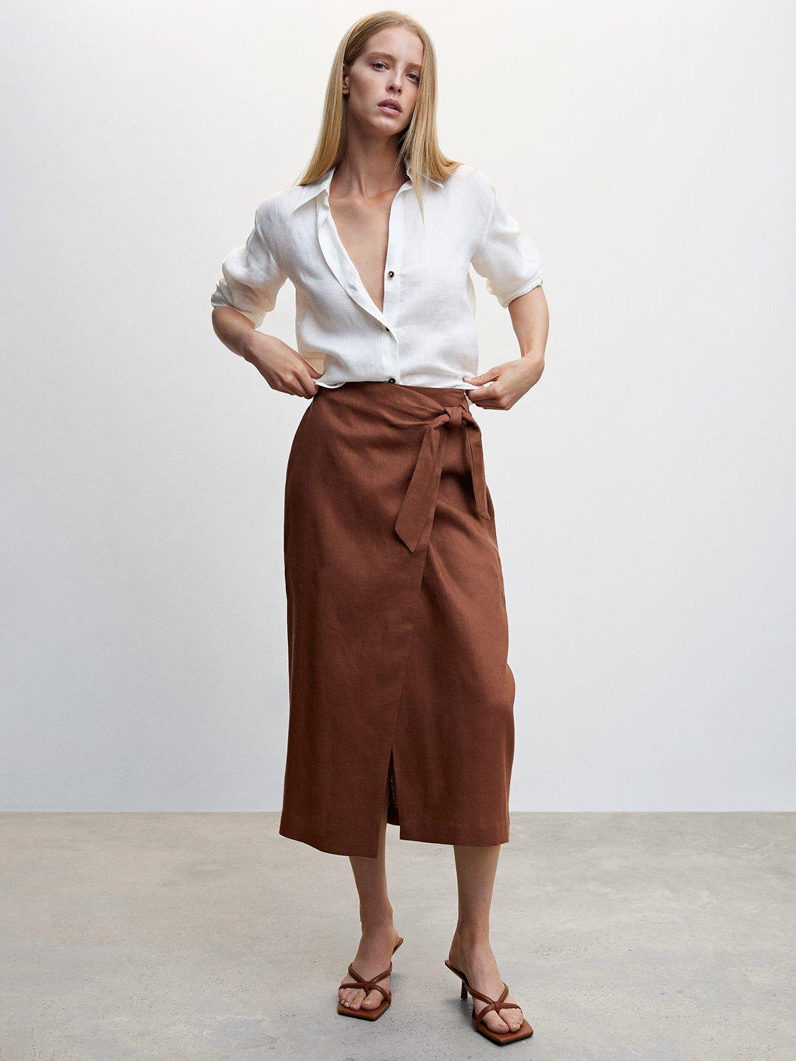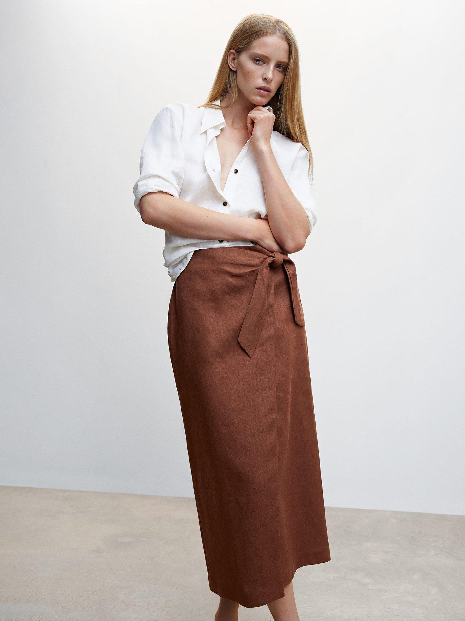 In an endlessly wearable A-line shape, this calf-grazing skirt by Mango is the epitome of sheer minimalism.