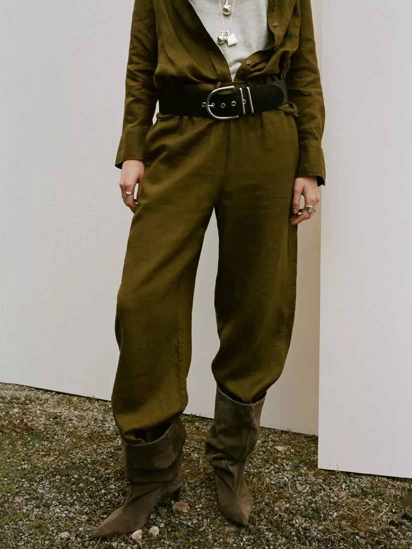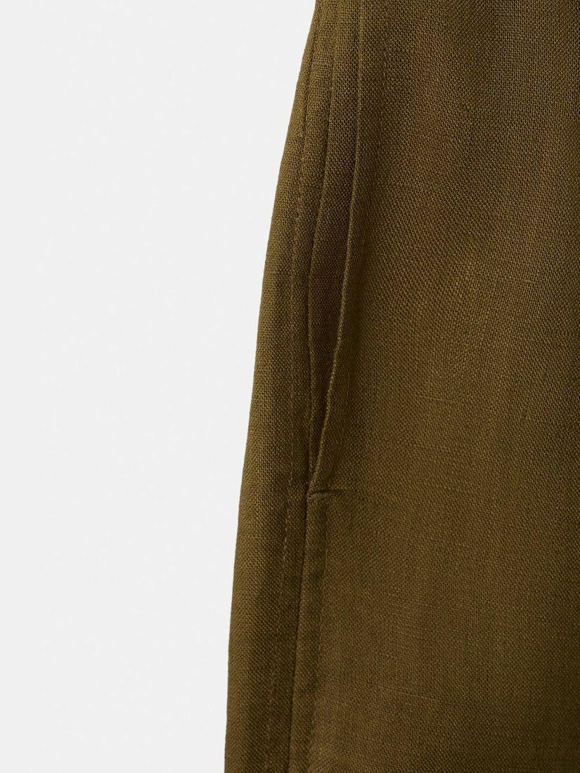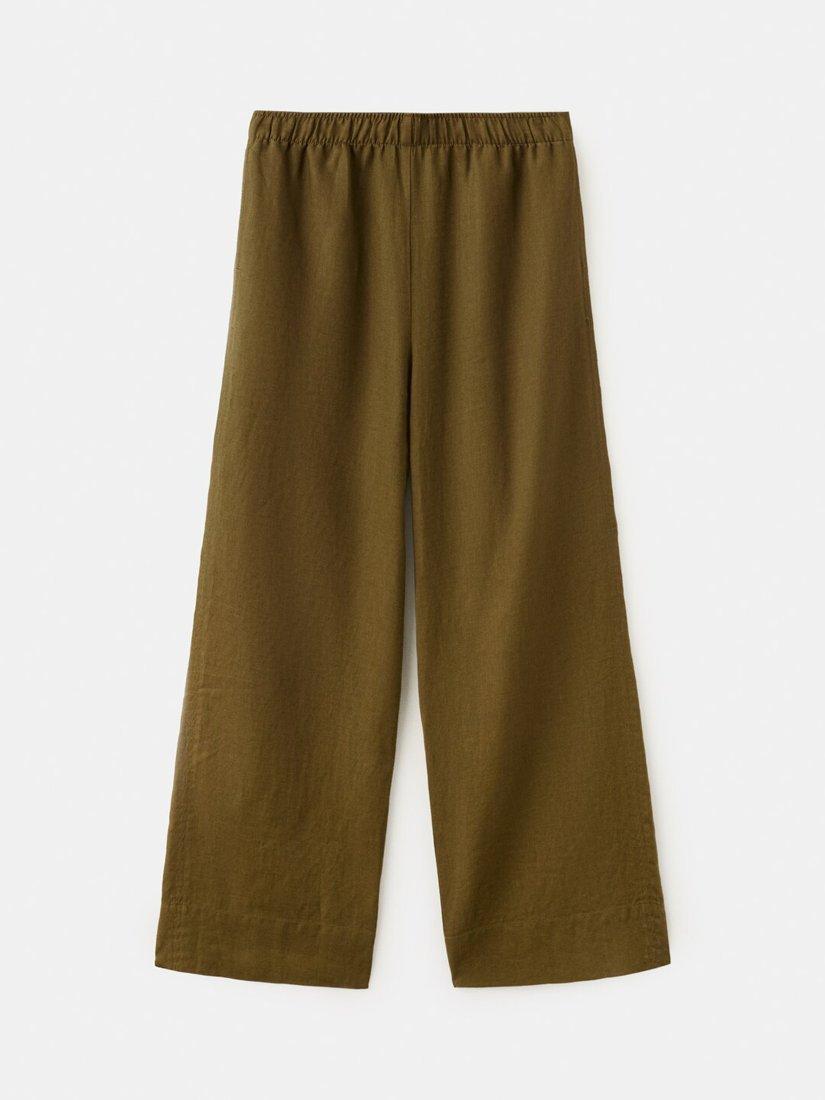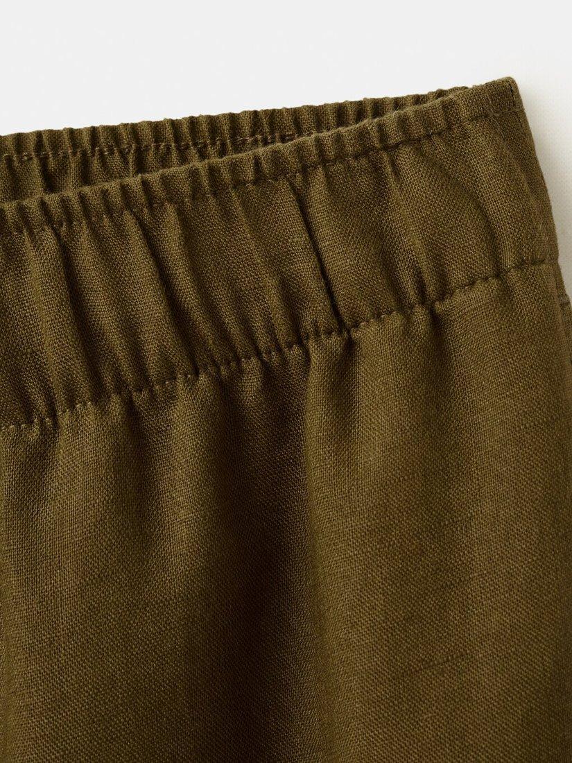 Wide-leg linen trousers with a mid-rise fit offer breezy movement and effortless summer comfort. The cropped silhouette is designed for those who value both modern shape and practical ease, making them ideal for daytime styling.