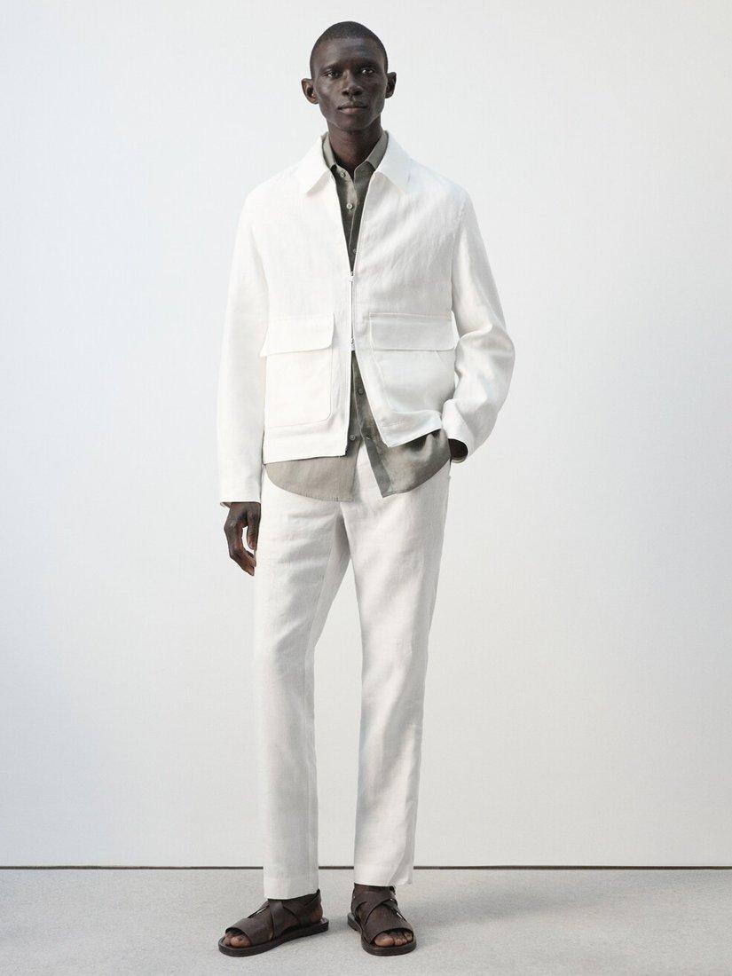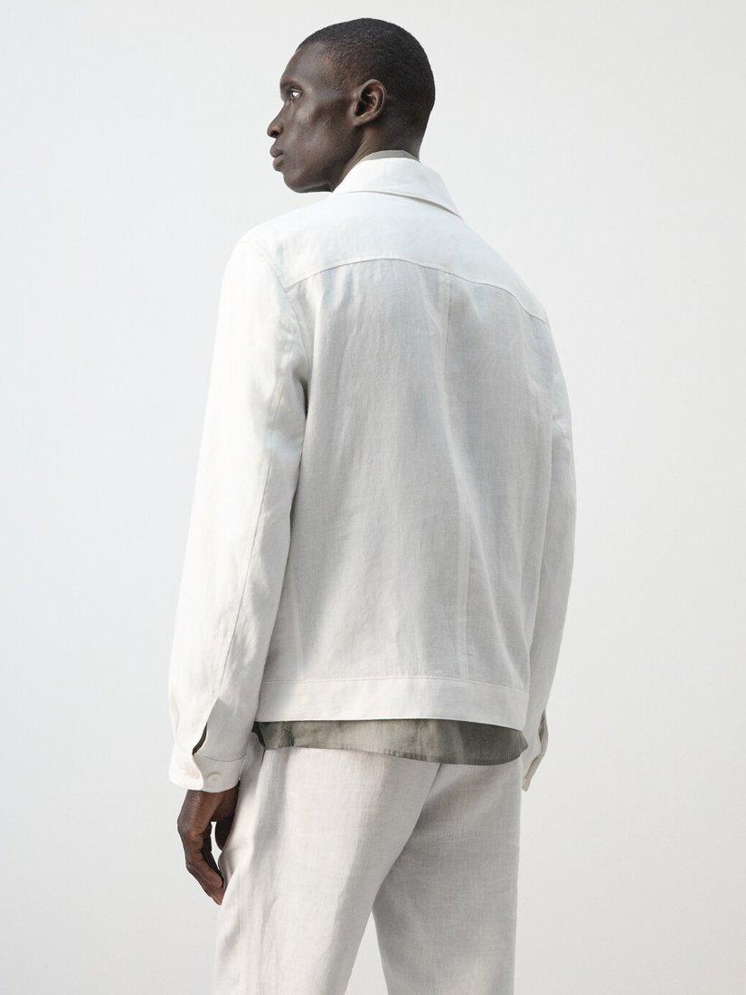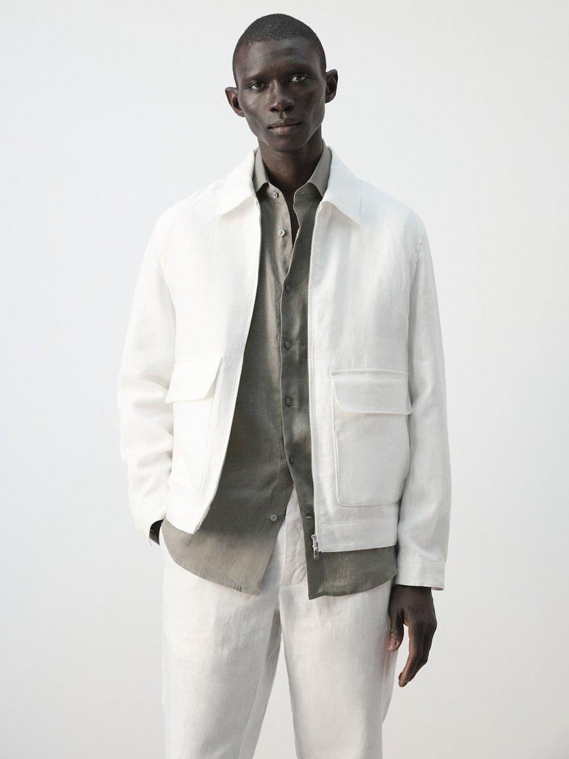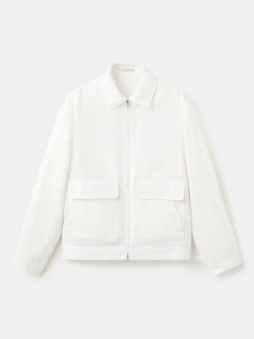 Lightweight linen jacket, offering a sharp silhouette and lasting comfort. Designed for easy movement with a zip-front, it features roomy patch pockets.