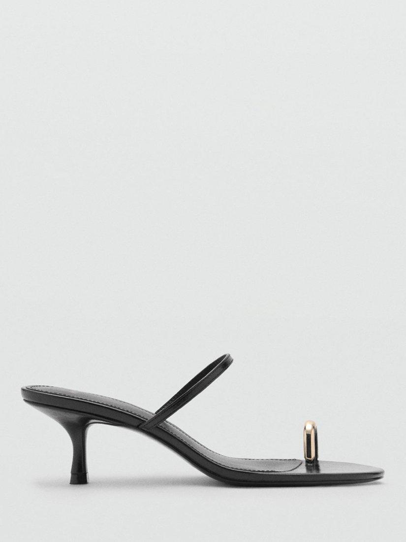 Heeled sandals by Mango. The open toe and metallic accent offer a bold touch, while the comfortable mid kitten heel keeps you moving with ease and confidence all day long.