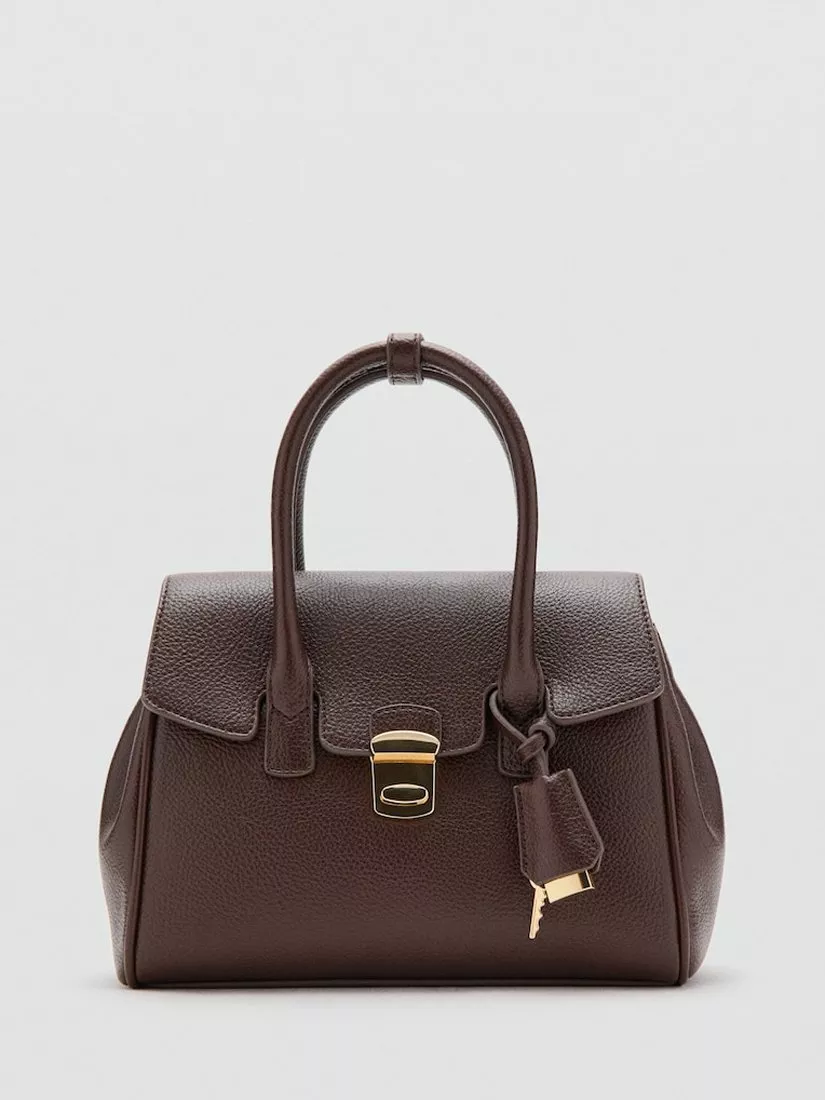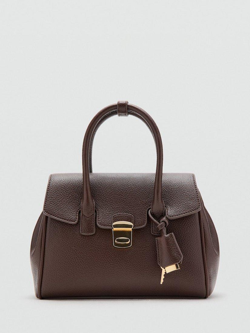 MangoLockfront Top-Handle Shoulder Bag, Chocolate