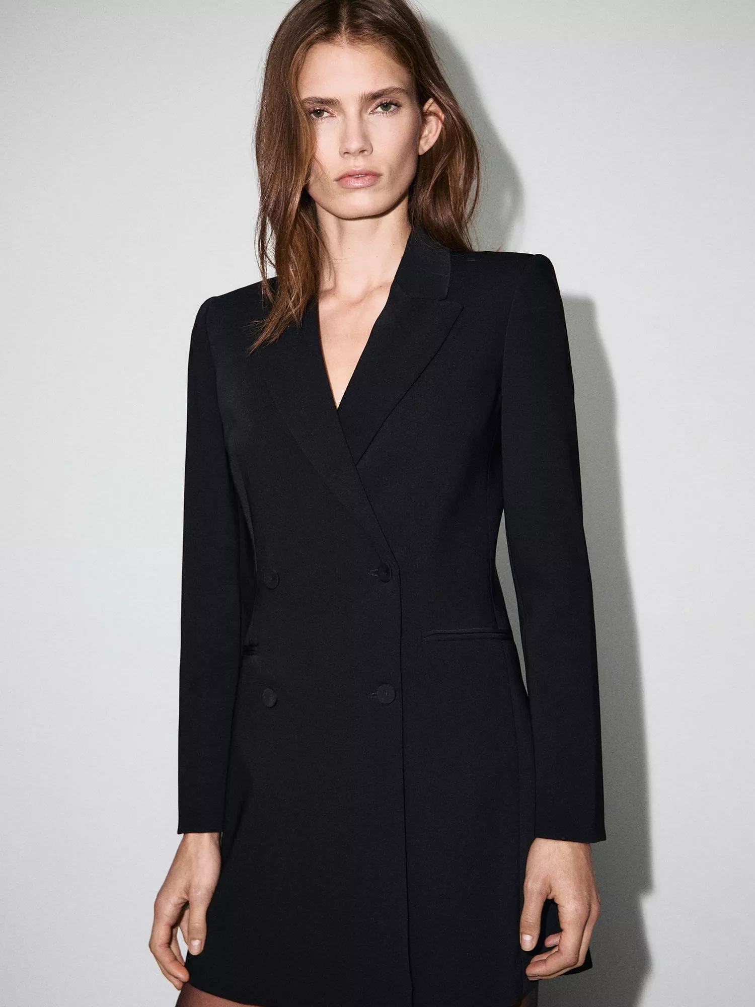 This mini blazer dress adds sharp polish to your day or evening. Its V-neck, classic lapels, long sleeves and double-breasted front offer a confident silhouette, while the full lining ensures comfort.