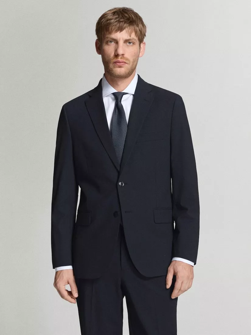 This regular-fit blazer gives you sharp structure with just the right stretch for comfort. Its partially lined design offers ease, making it a versatile layer for your day or evening looks.