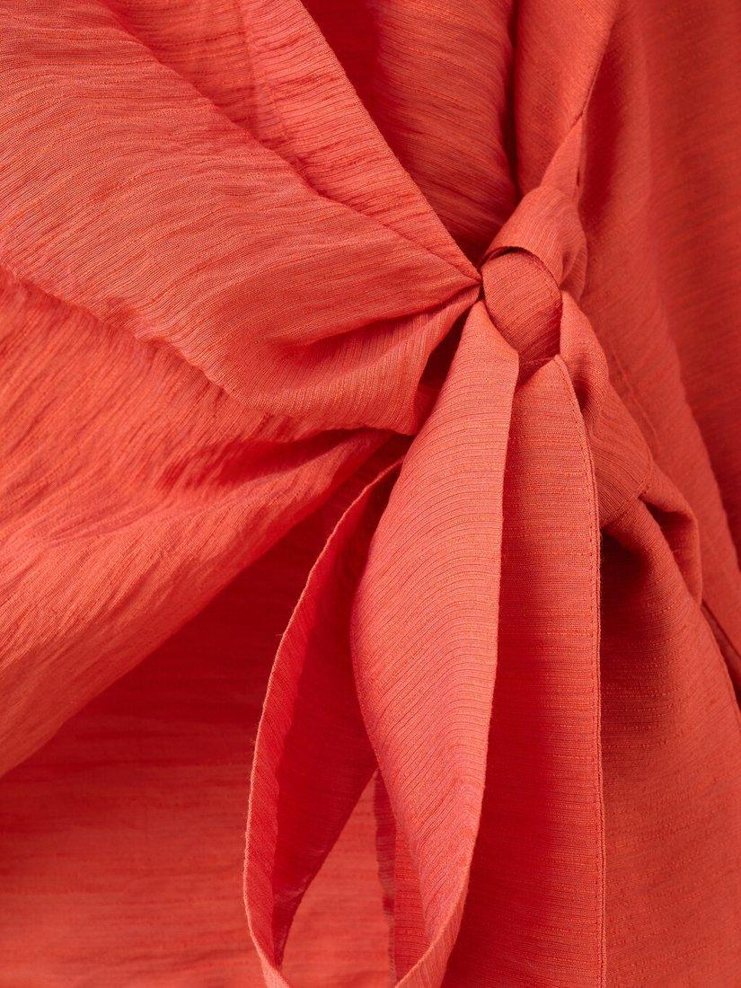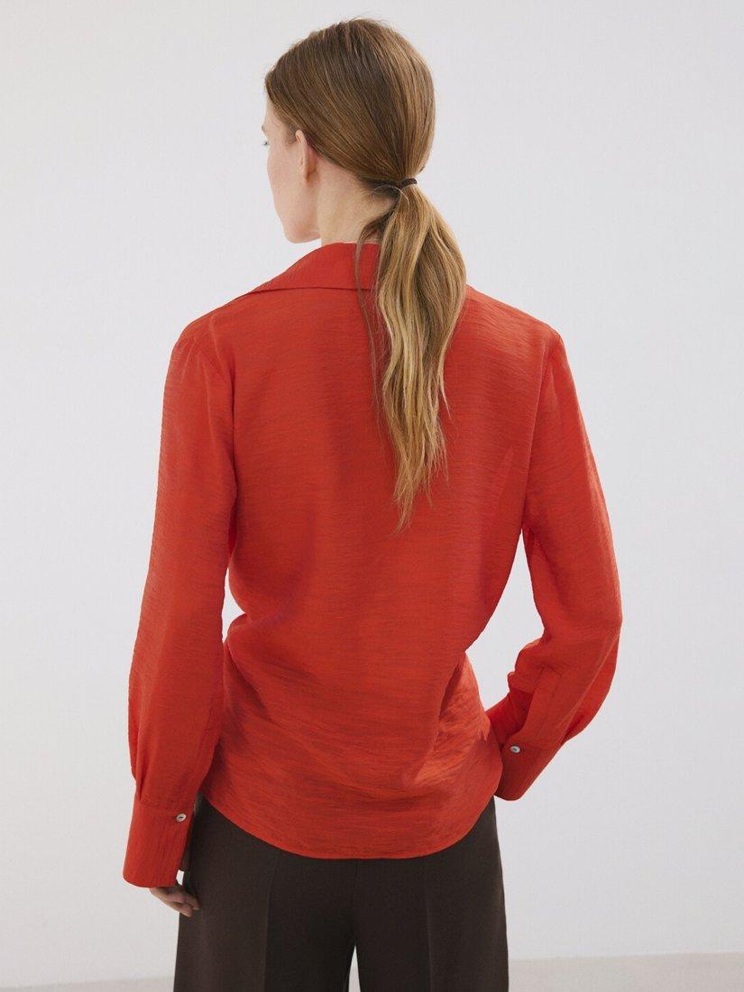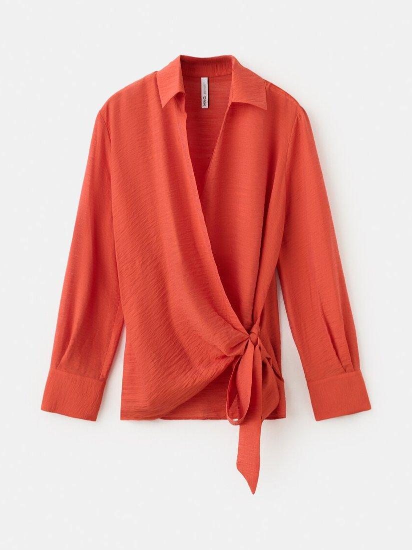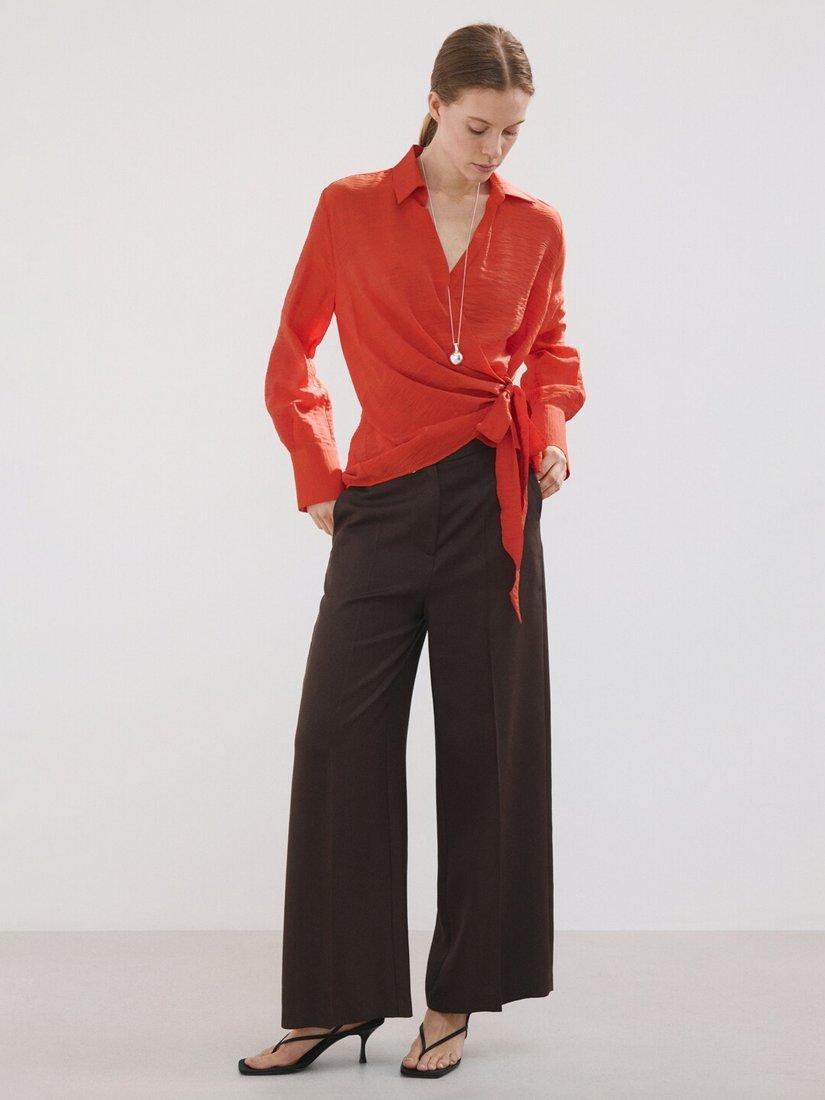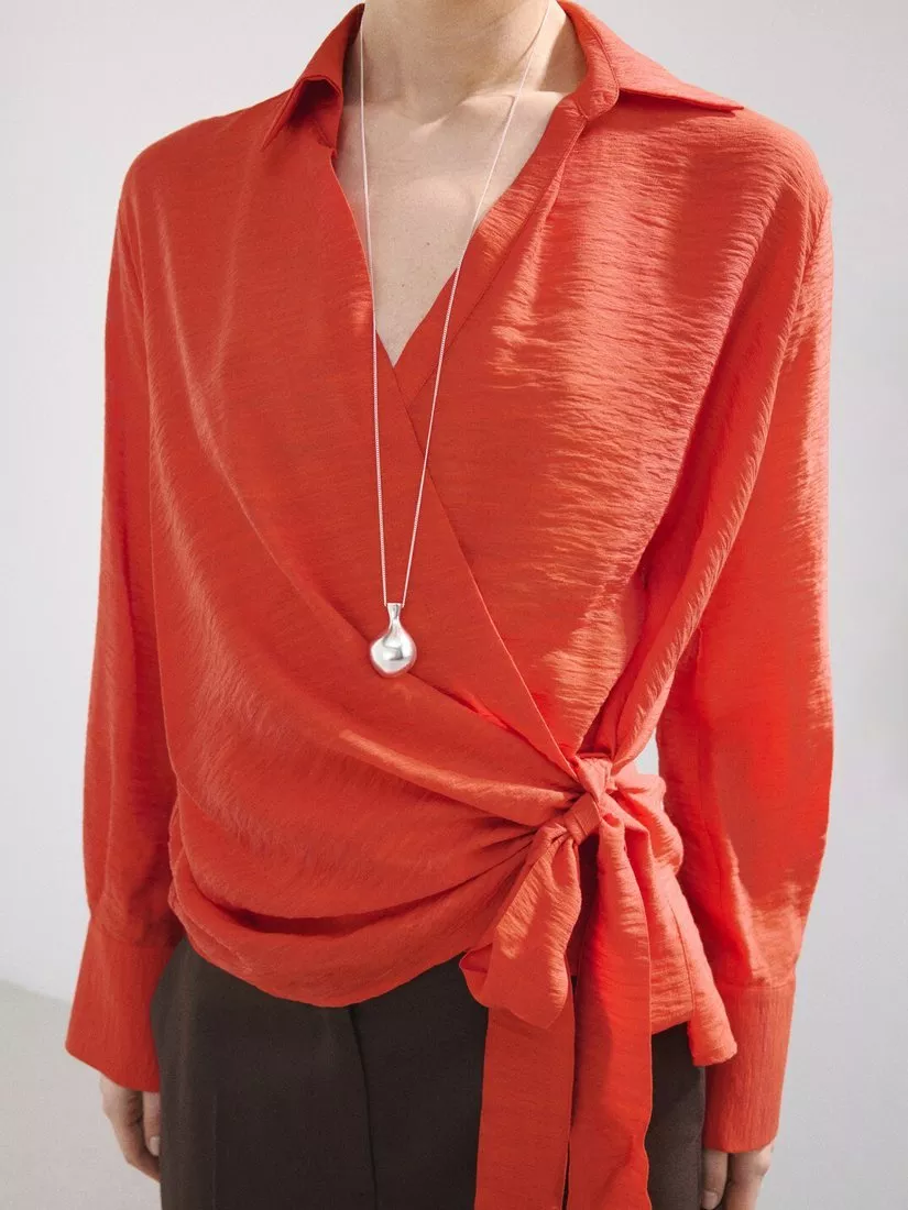 A wrap shirt crafted in a fluid viscose blend, finished with a smart collar, long sleeves and a sculptural knot at the waist. Designed for day-to-day occasions when you want sharp detail without fuss.