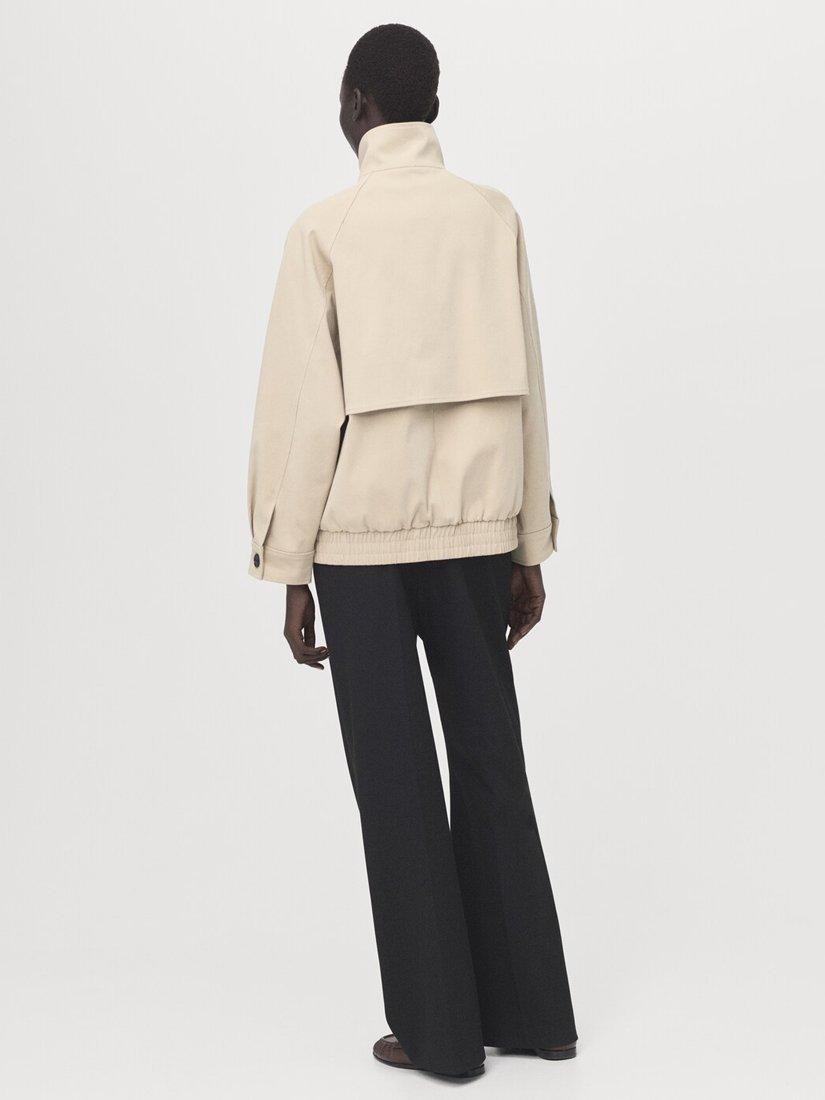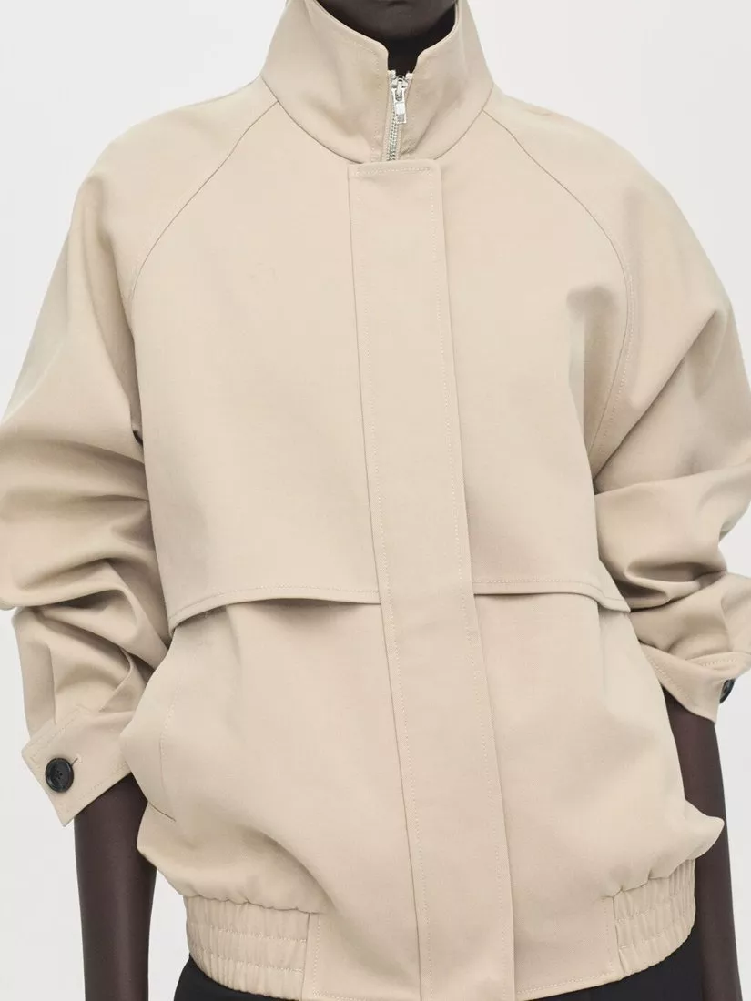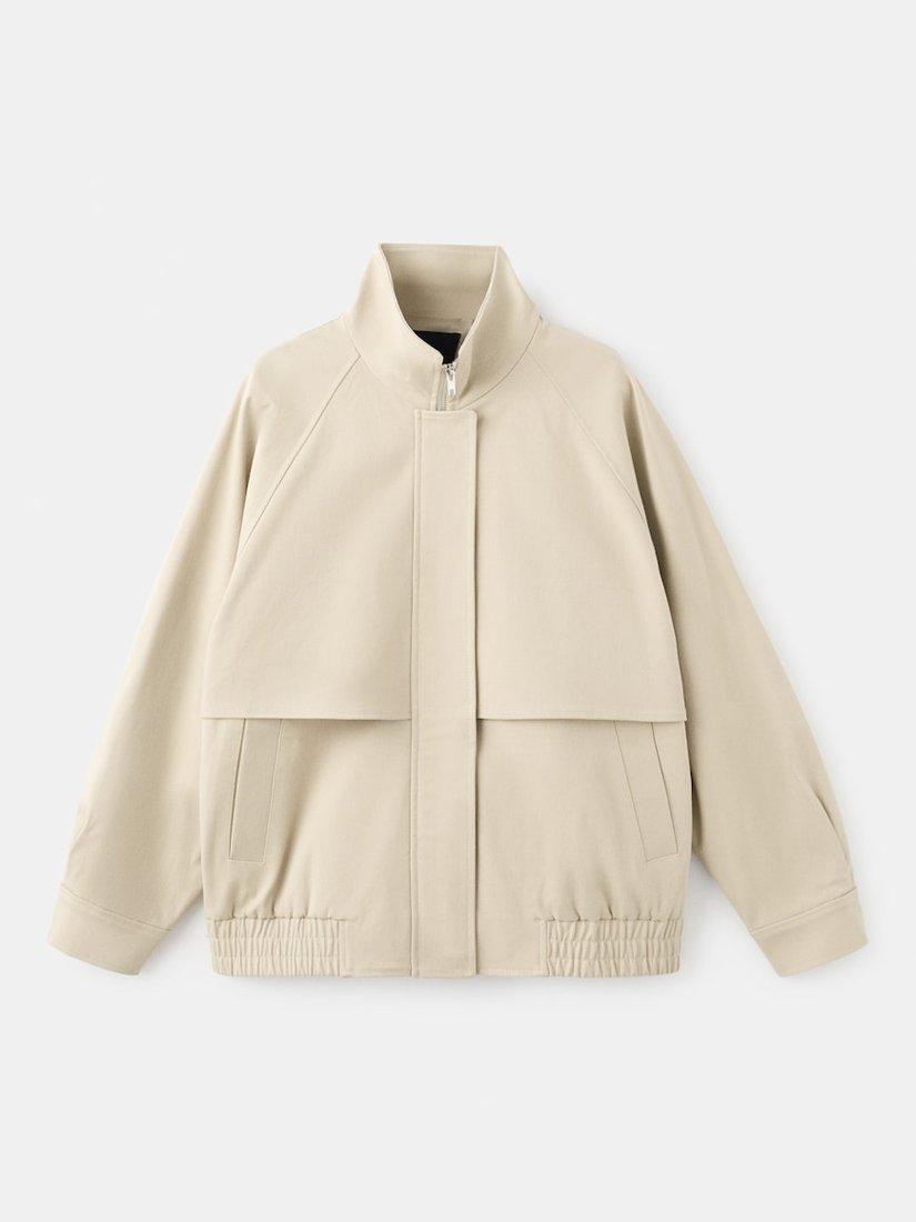 A bomber jacket with a zip neck and long sleeves, crafted for comfortable movement. The cotton blend offers just the right stretch, making this plain style a sharp pick for layered looks on breezy days or relaxed work breaks.