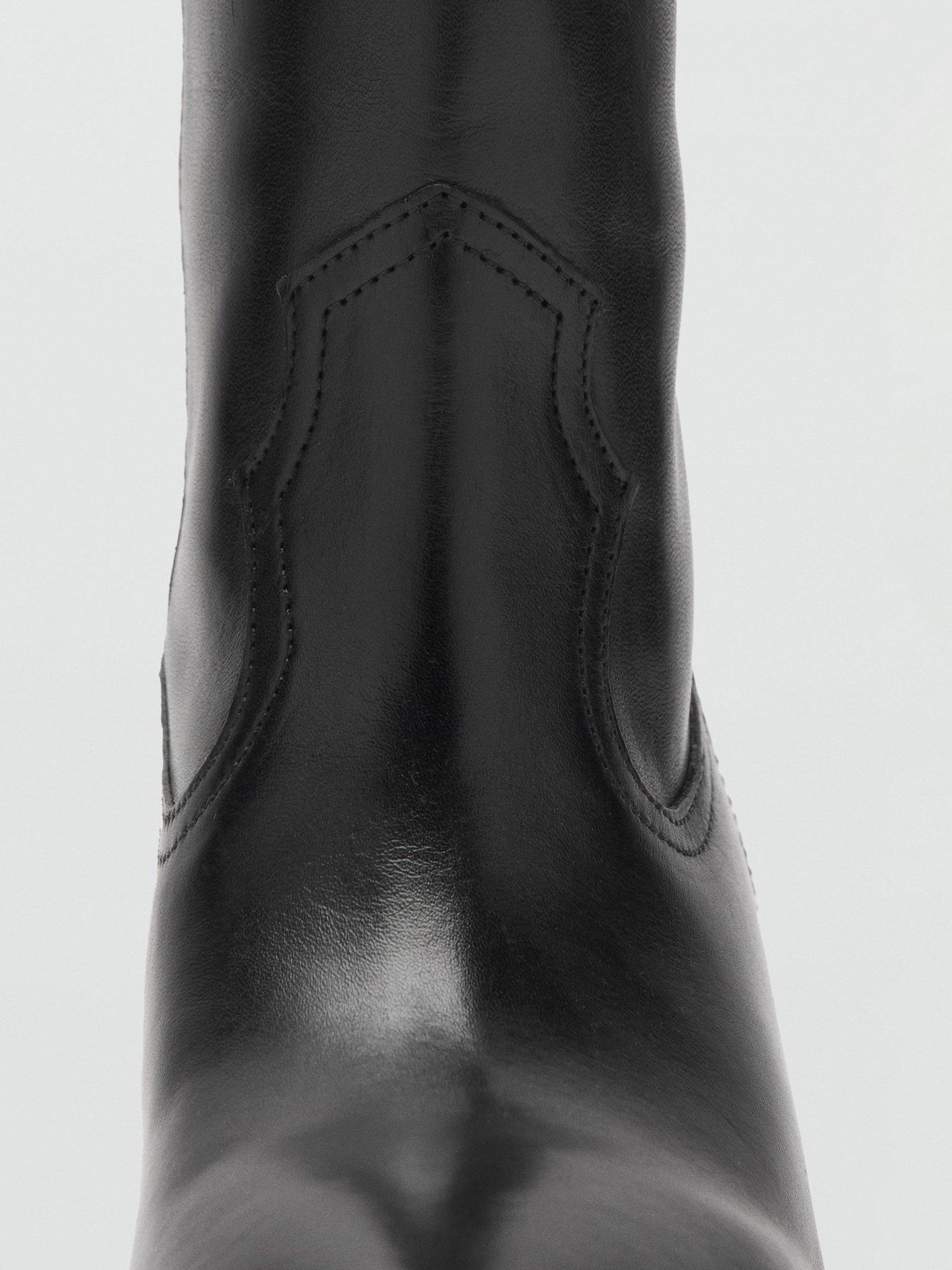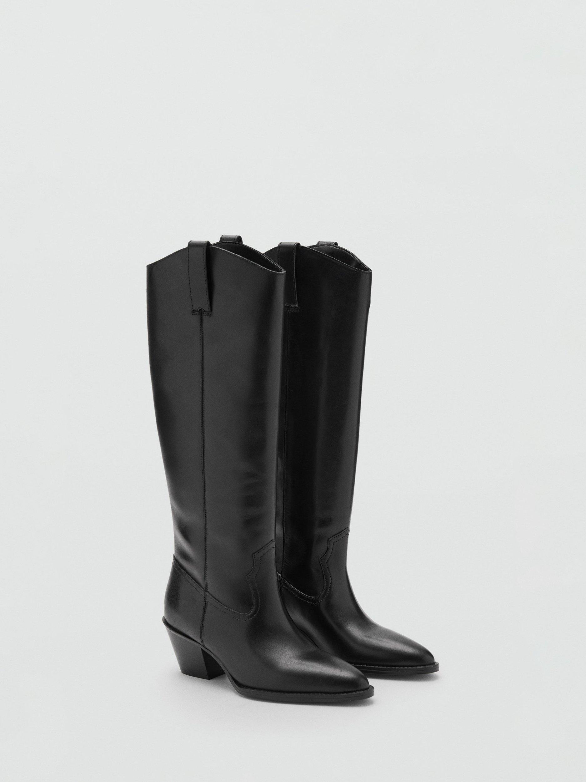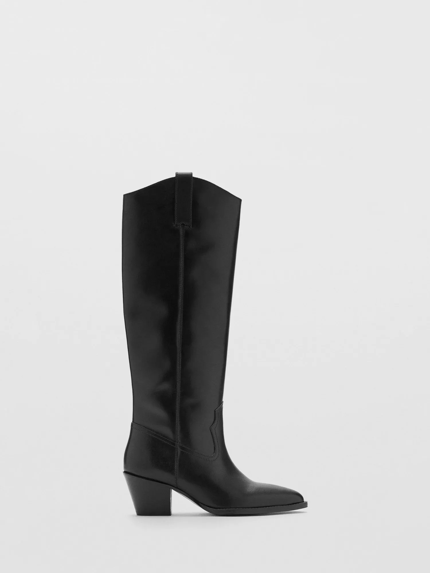 Knee-high leather cowboy boots, featuring a pointed closed toe and sturdy block heel for all-day comfort. The soft cotton lining keeps you at ease, while the mid heel height gives you confidence with every stride.