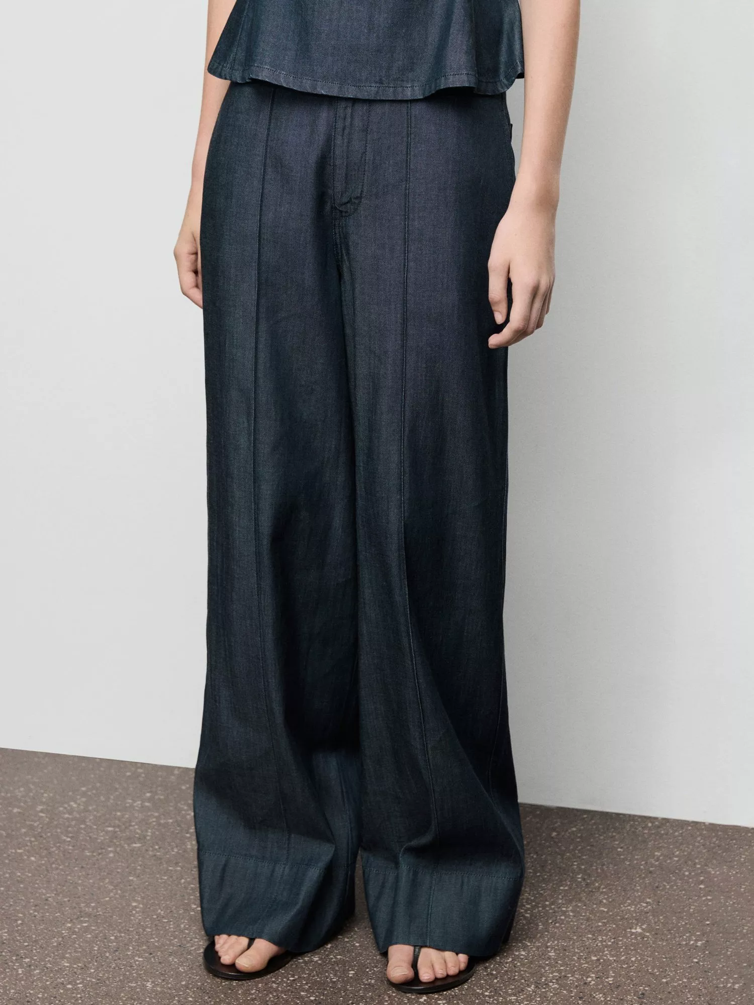 A sharp silhouette anchored by straight leg - a pair of trousers from Mango made from a cotton-blend fabric. This style is cut to sit mid rise with a zip fastening and hems that fall to a regular length.