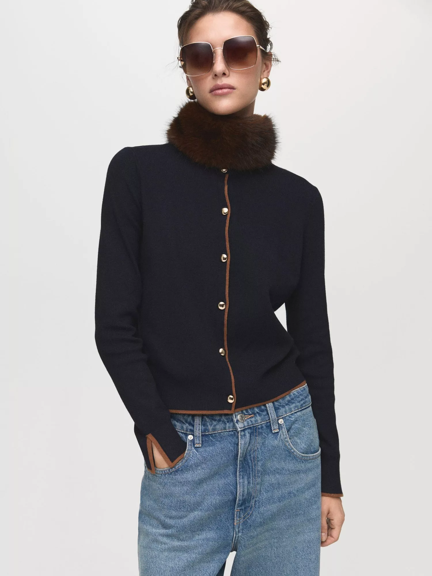 With an easy round neckline, this lightweight colour contrast cardigan from Mango is great for layering up season after season.