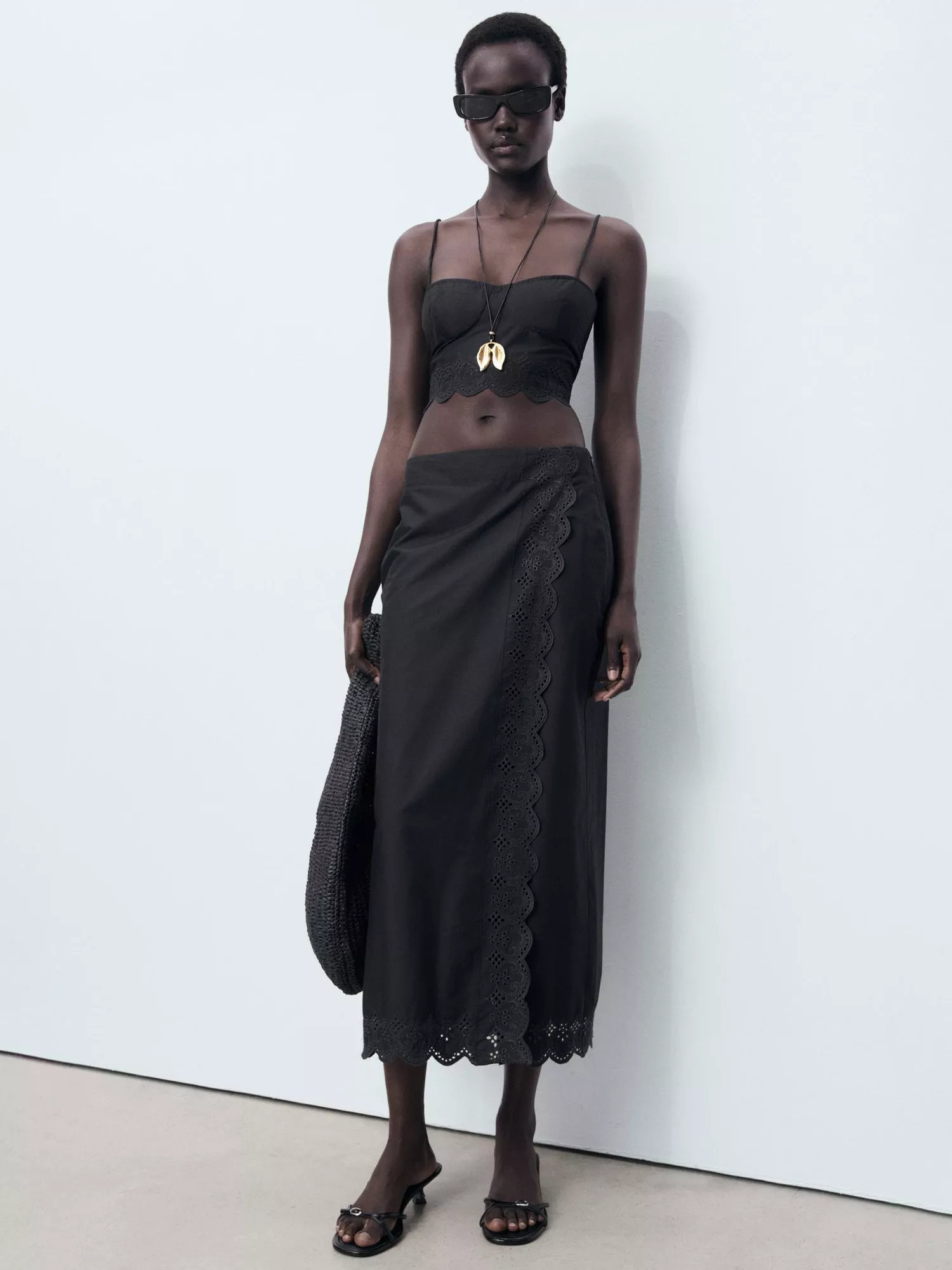 Crisp proportions in a midi cut - opt for this calf-grazing skirt from Mango. A-line in shape, it's made from pure cotton with embroidered details. Equipped with a zip closure.
