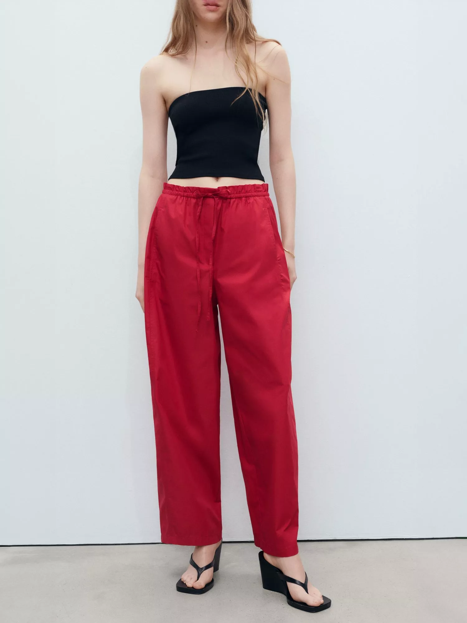 Carved out to a looser leg - you'll constantly find yourself reaching for these paperbag trousers from Mango, made from pure cotton. They are designed to sit mid rise with hems that fall to a regular length.
