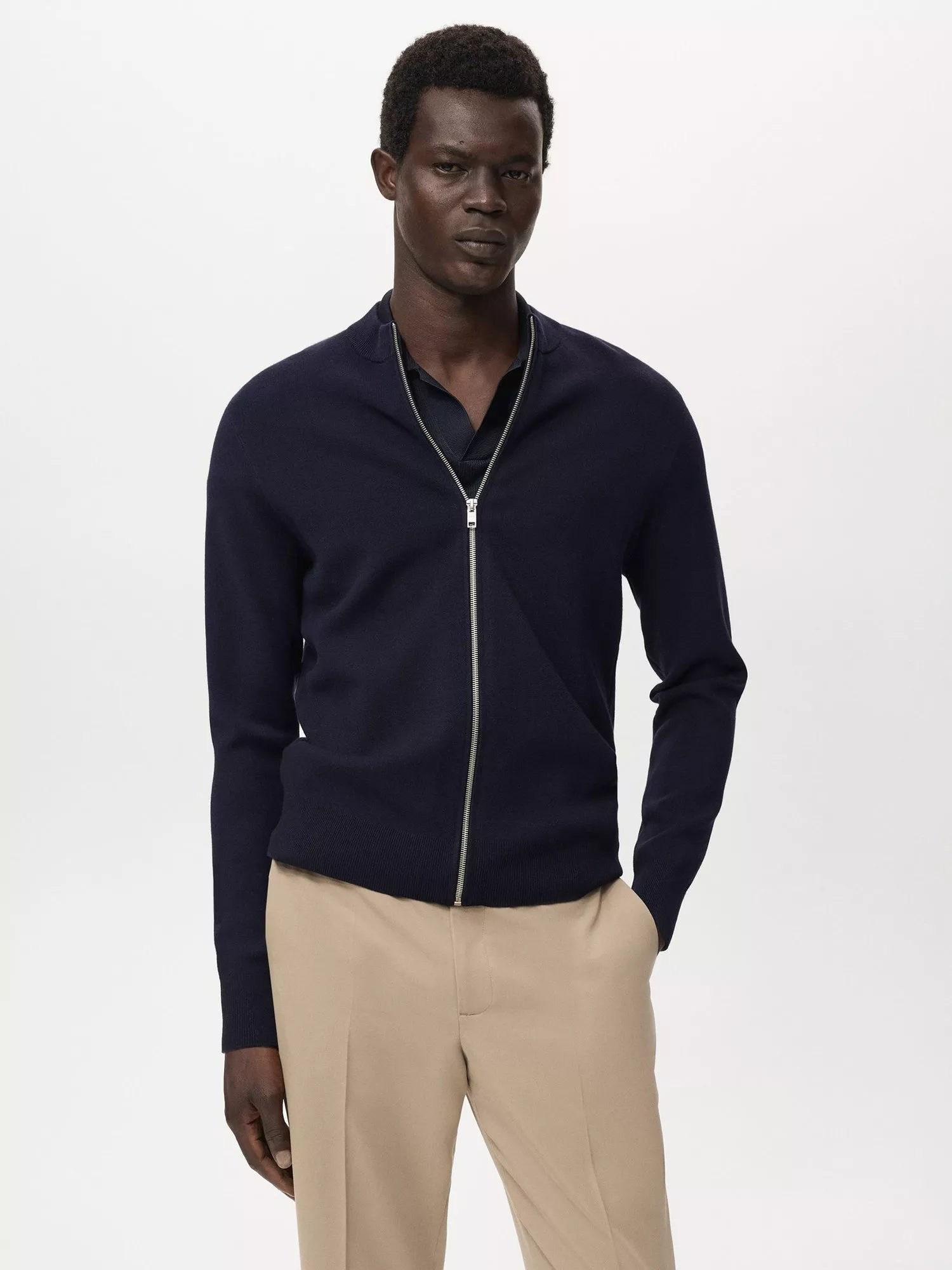Crafted from a substantial medium-knit fabric, this cardigan delivers a reliable regular fit. The design is elevated by the detailed cable knit collar, while the zip fastening on the front section offers modern versatility for layering.