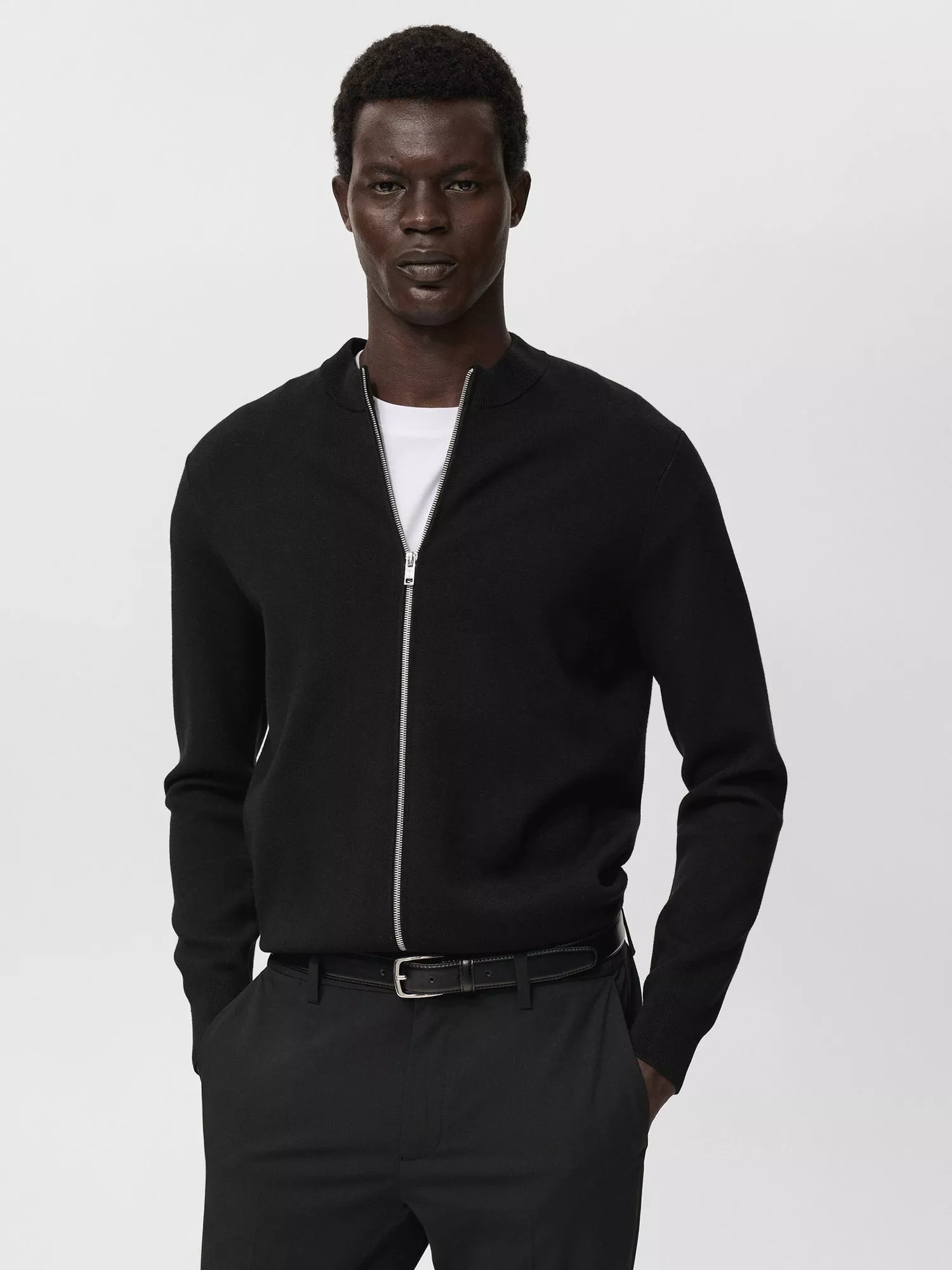 Crafted from a substantial medium-knit fabric, this cardigan delivers a reliable regular fit. The design is elevated by the detailed cable knit collar, while the zip fastening on the front section offers modern versatility for layering.