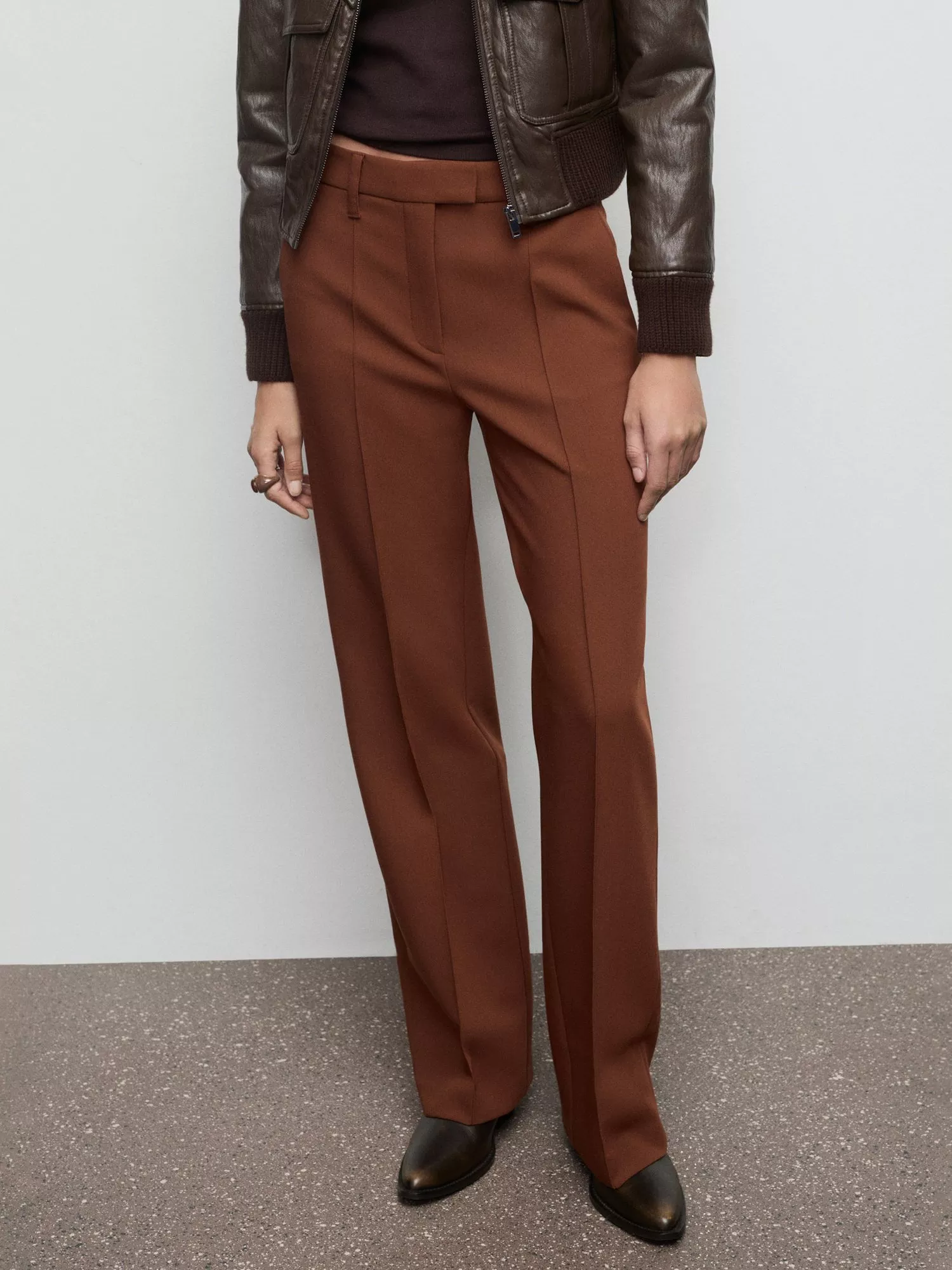 A sharp silhouette anchored by straight leg - a pair of trousers from Mango. This style is cut to sit mid rise with a concealed button, hook and zip front closure and longer length hems.