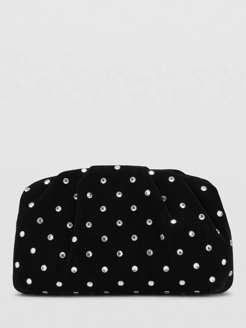 MangoMalu Velvet Embellished Clutch Bag, Black