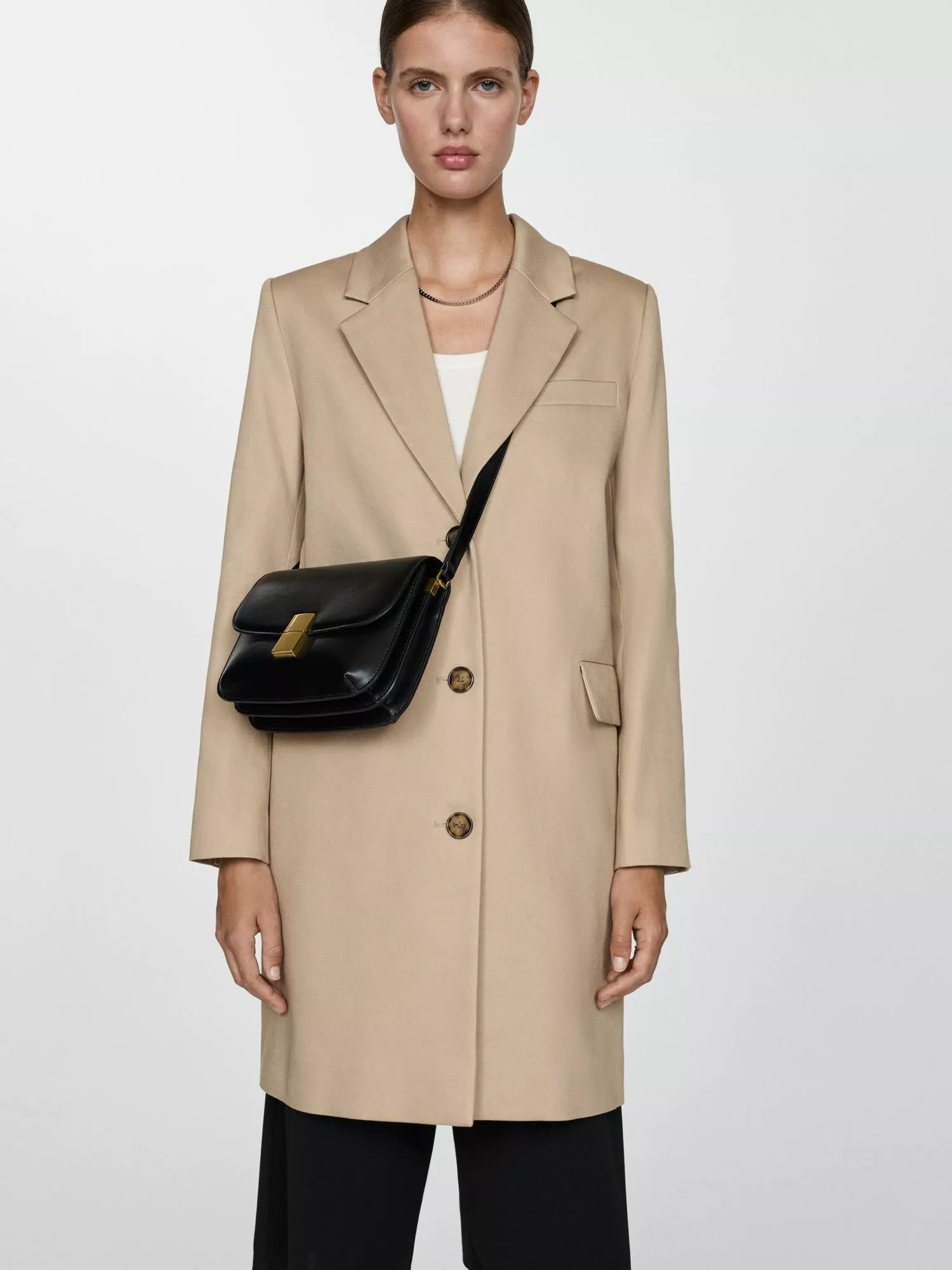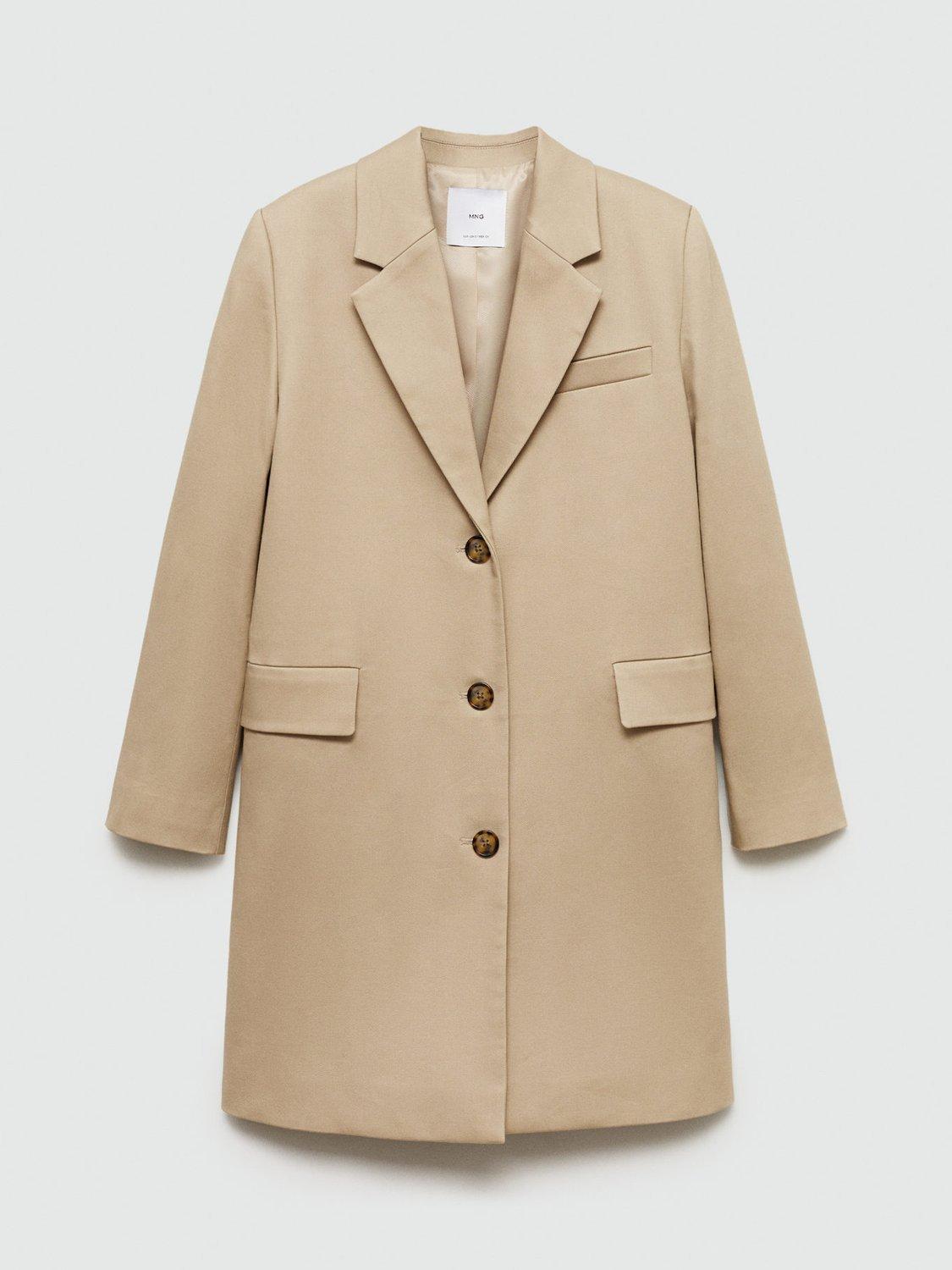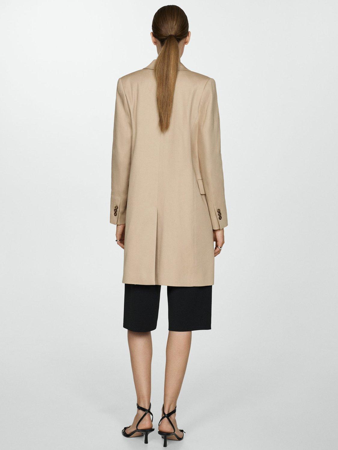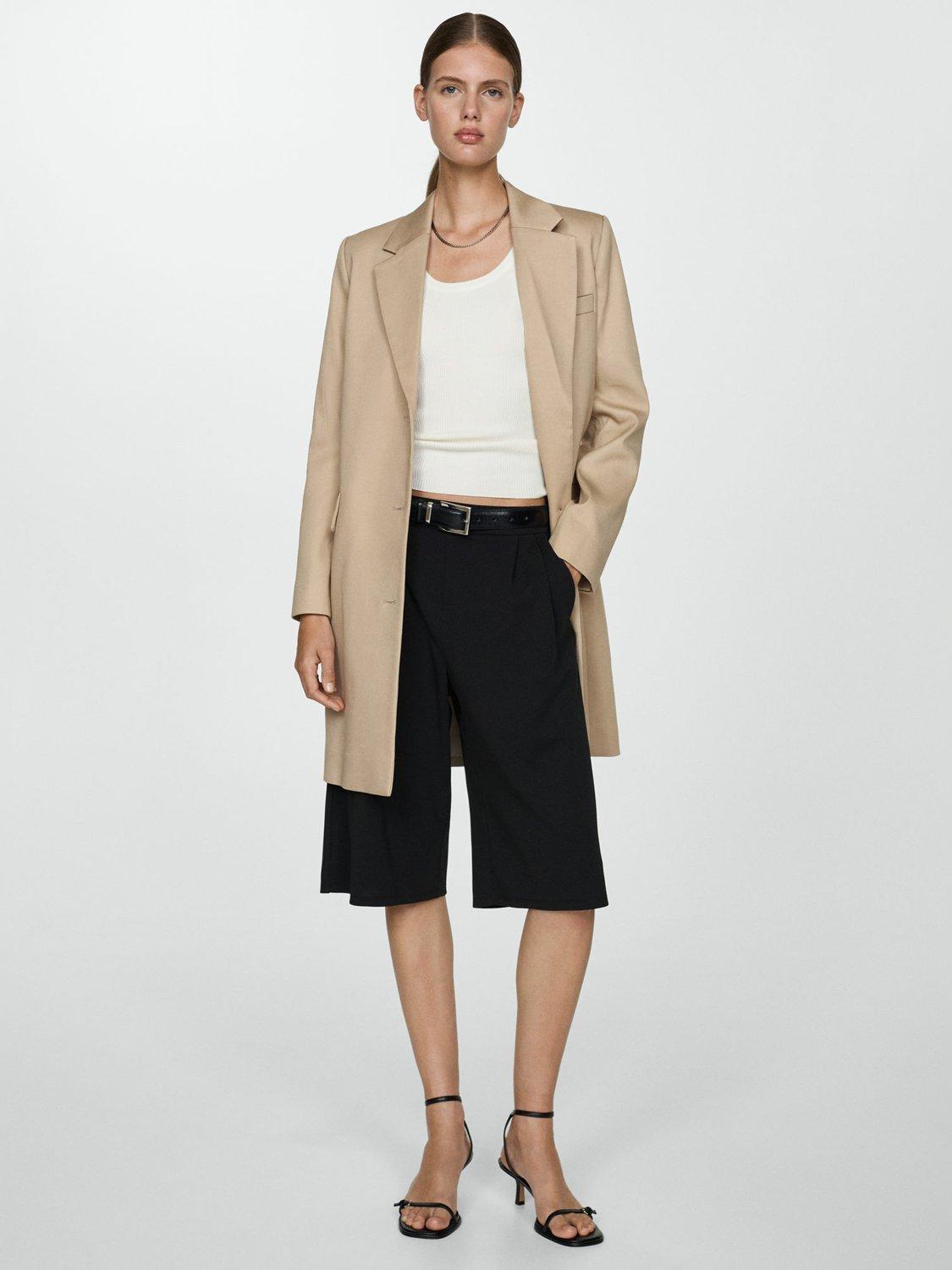 A refined choice to stave off unpredictable weather, this tailored coat from Mango falls to a flattering knee-length hem.