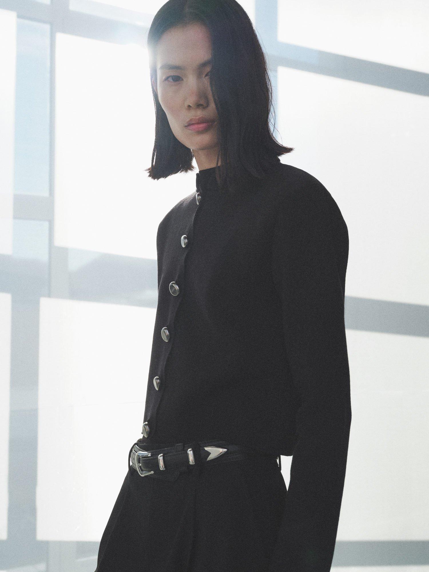 Effortlessly smart, this button front jacket by Mango sits at the hip for versatile coverage. With a classic neckline, it is made from a longlasting blended fabric.