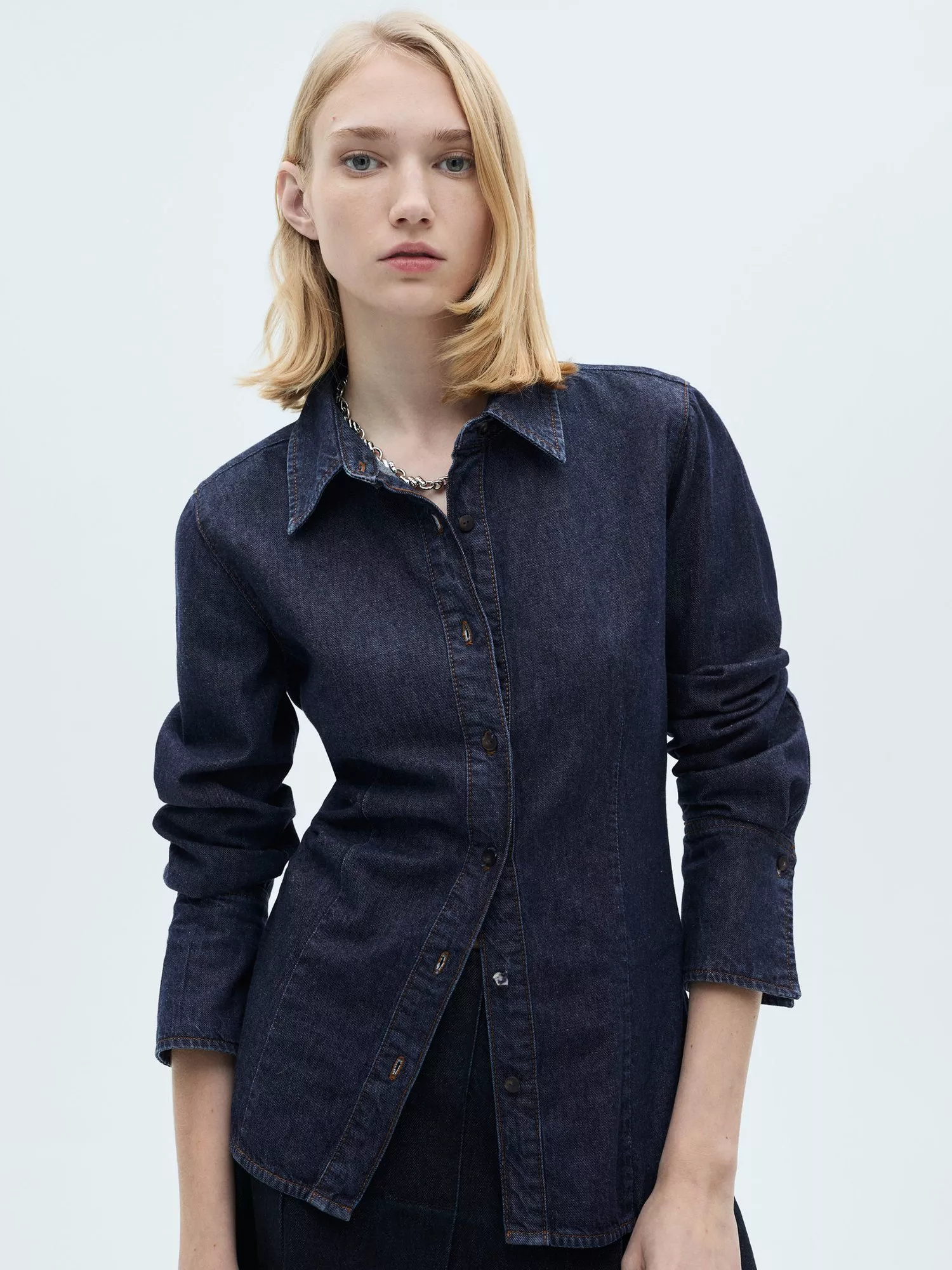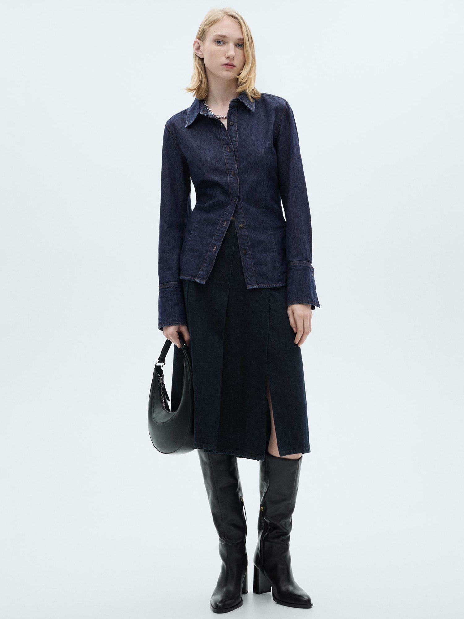 Updating your collection, this denim shirt by Mango makes for the perfect companion to patterned layers. Structured with a point collar and long sleeves, it has a cool rinse wash finish.