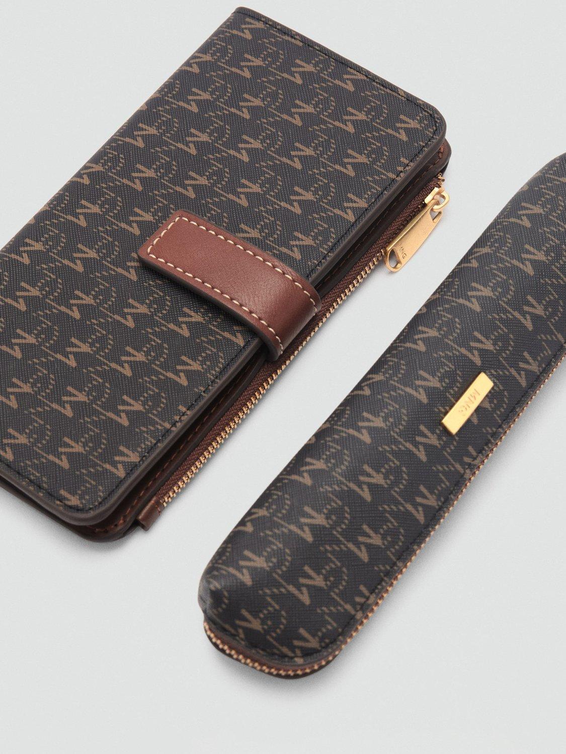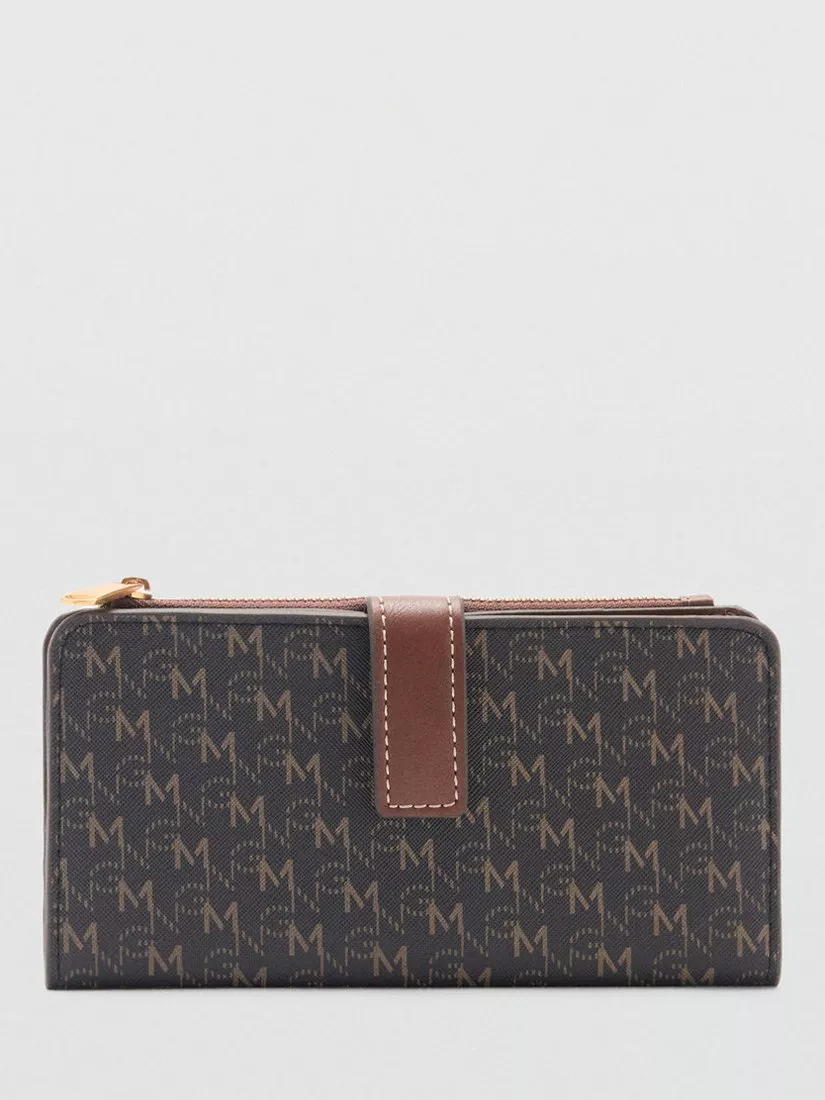 With monogram detailing, this wallet from Mango opens to reveal multiple card slots and a zip pocket for coins. Lined inside, it fastens with a single press stud and is finished with a stamped design and logo print.