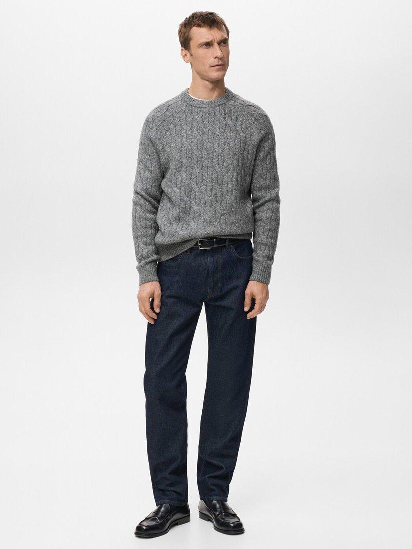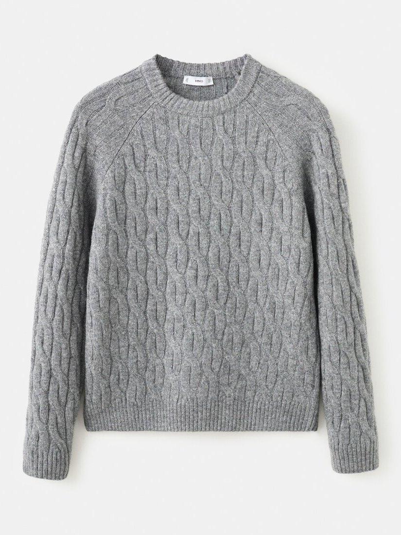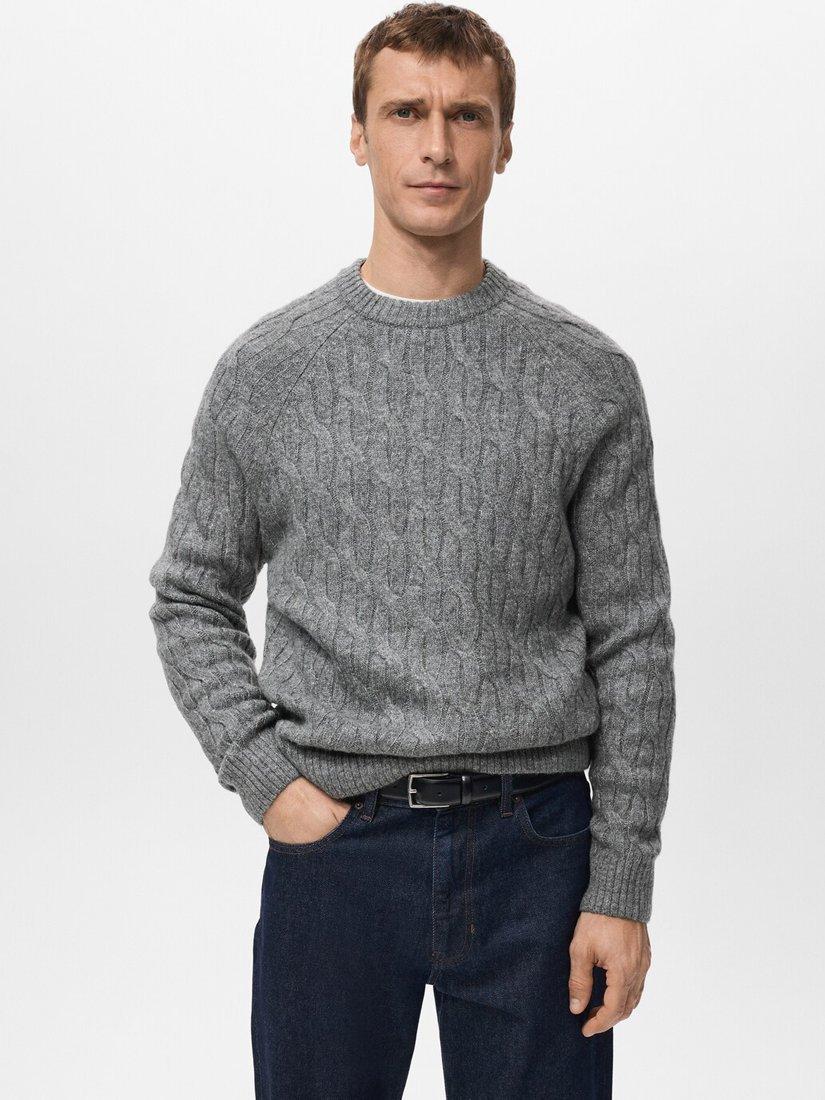 MangoMaria Cable Knit Crew Neck Jumper, Grey