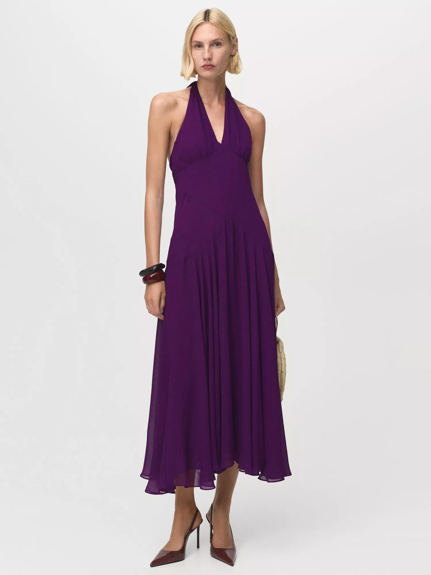This flared midi dress lets you move freely and stand out at any event. Its halterneck design and smooth, lined finish keep you feeling comfortable and confident.