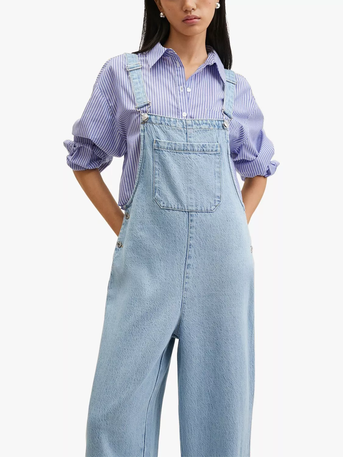 Framing the décolletage with a square neckline, this sleeveless jumpsuit from Mango is shaped to a wide leg and is constructed from hardy cotton-denim.