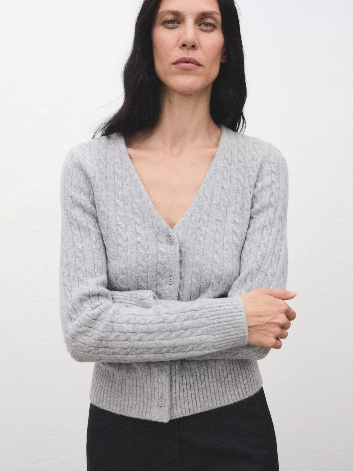 Slipping on for easy layering, this braided knitted cardigan from Mango is made from a rich wool blend.