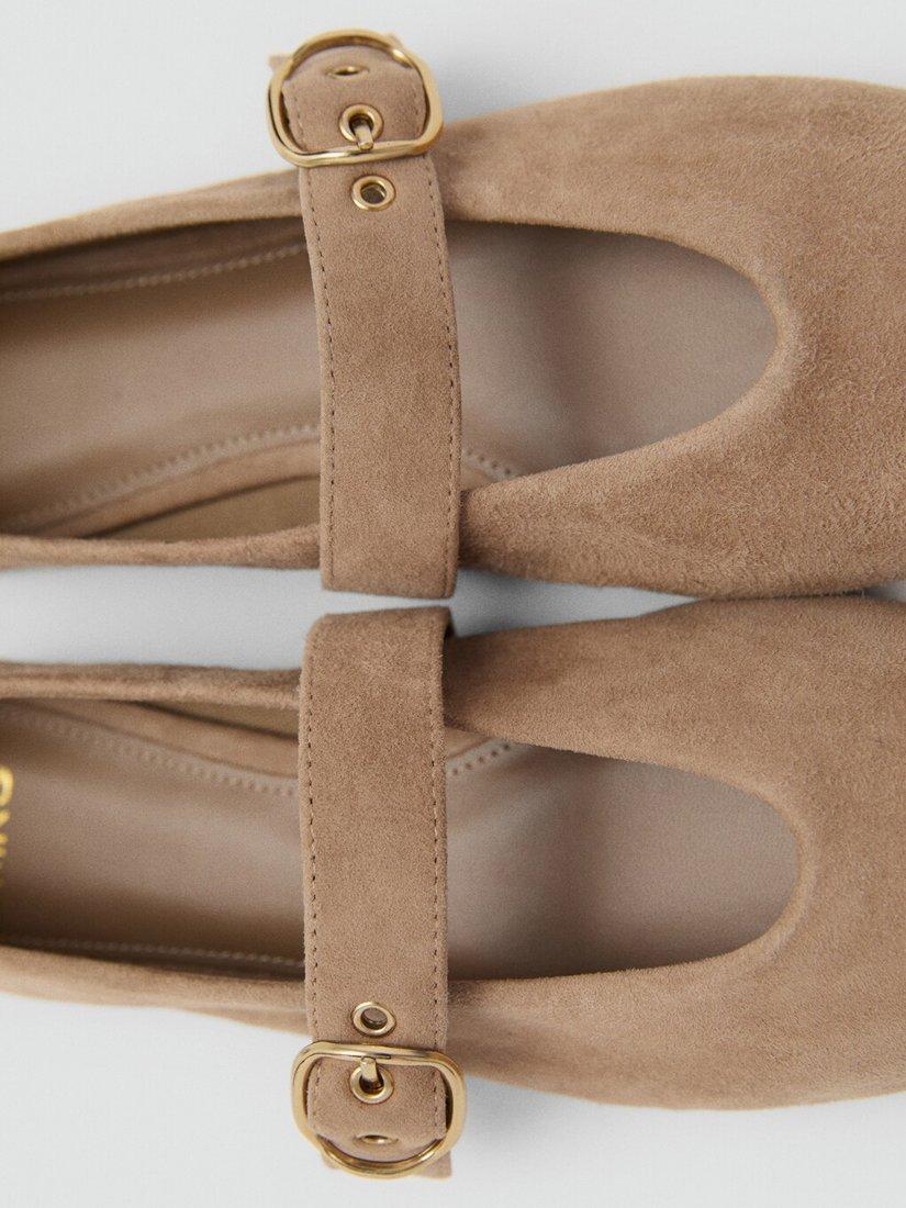Suede leather Mary Janes, featuring a velvet touch, soft cotton lining and practical buckle fastening. With a cushioned insole for all-day comfort, they pair effortlessly with your favourite casual looks.