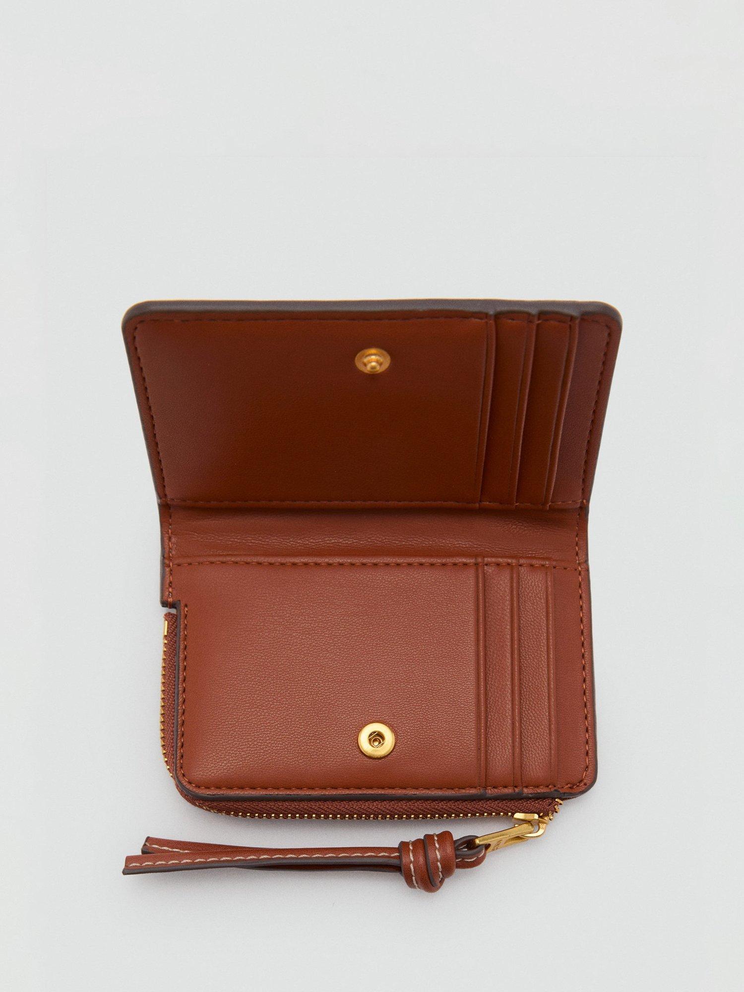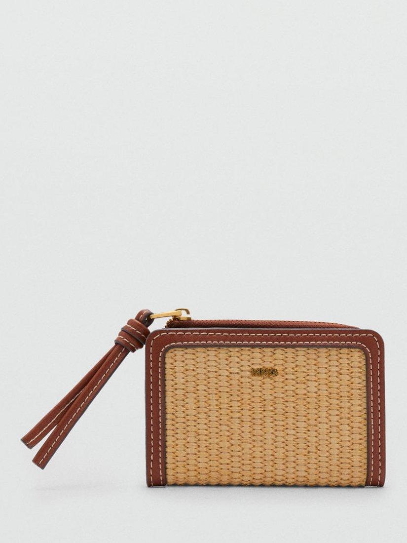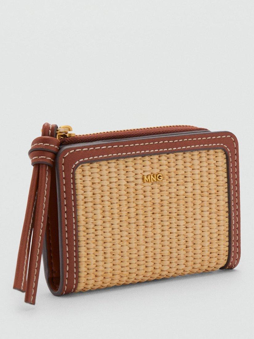 With its raffia-effect finish, this Mateo flat purse from Mango has a summer vibe. Offering six card slots on one side and metallic press stud fastening, it's completed with a zip-around coin compartment.