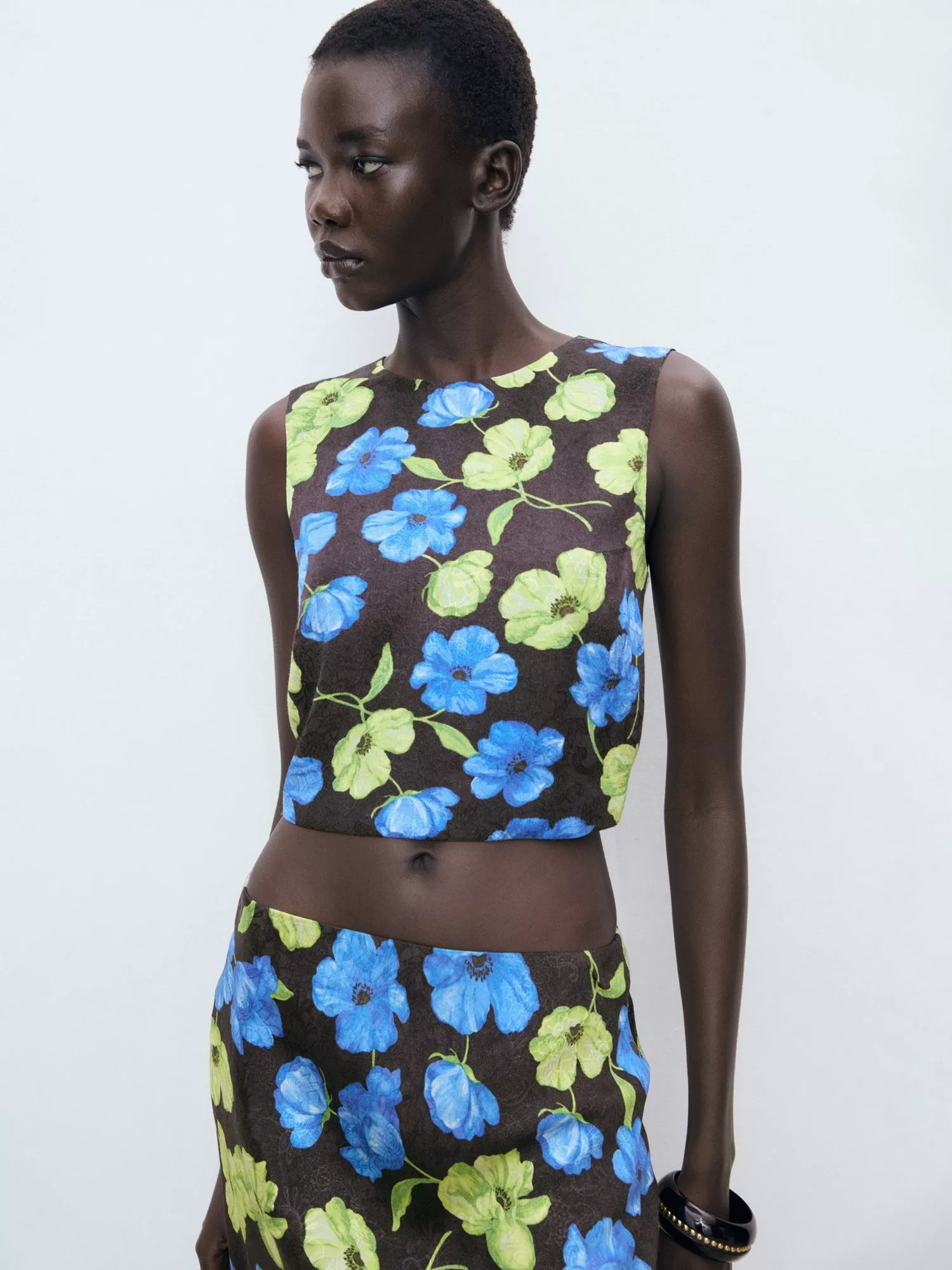 Bring intrigue to your summer with this sleeveless floral blouse. The round neck and lightweight feel keep you comfortable, while a clever pattern is designed to brighten your day and theirs.