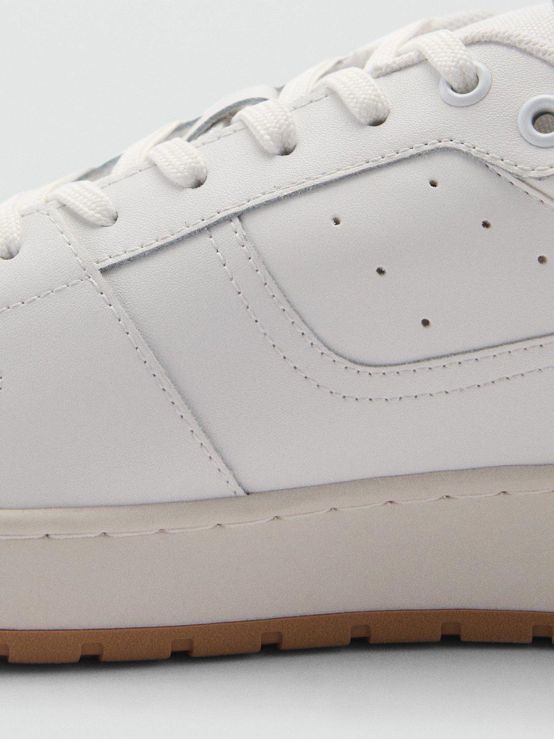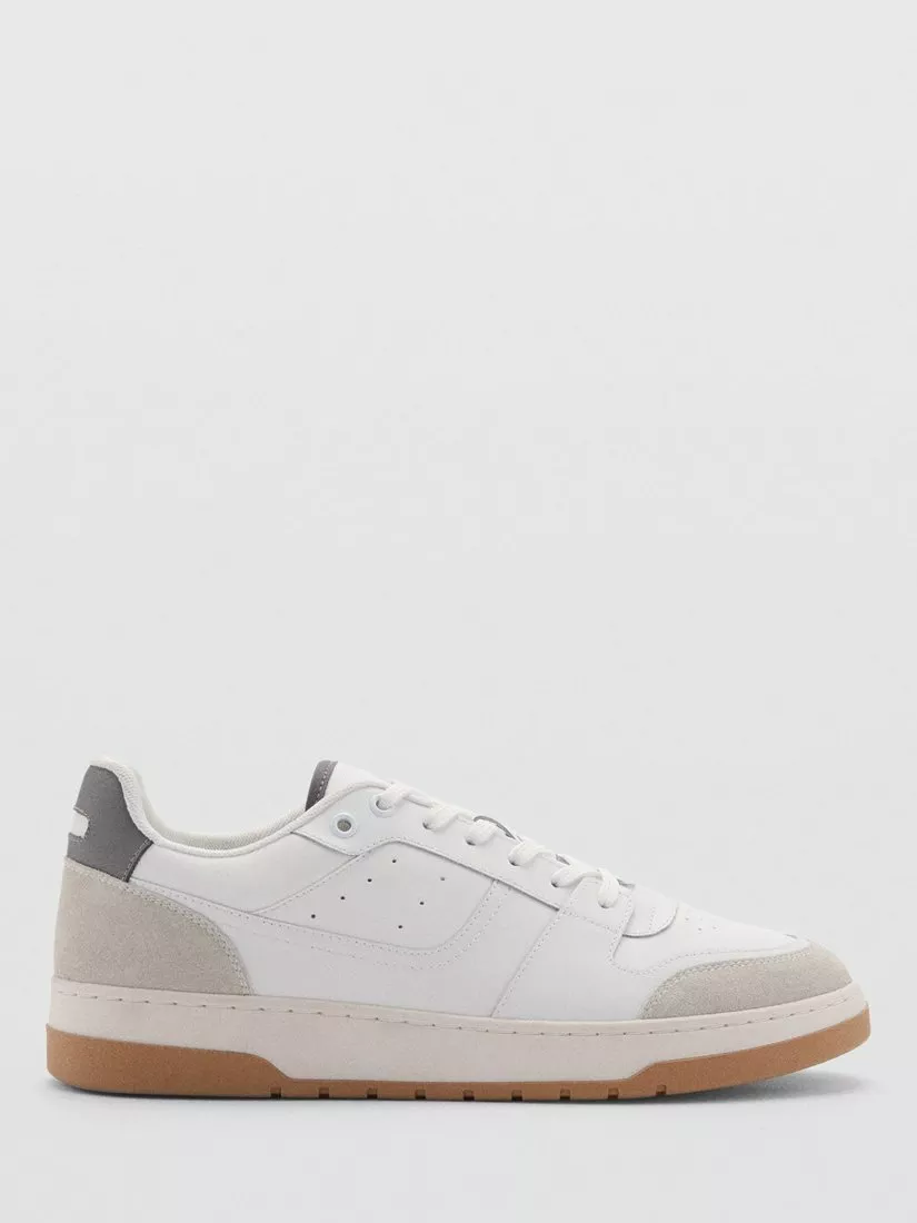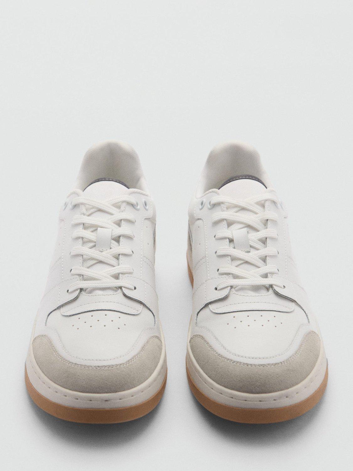 Leather cut, combined with contrasting suede appliqués, rounded toe, backstitched details, laces, contrast rubber volume sole.