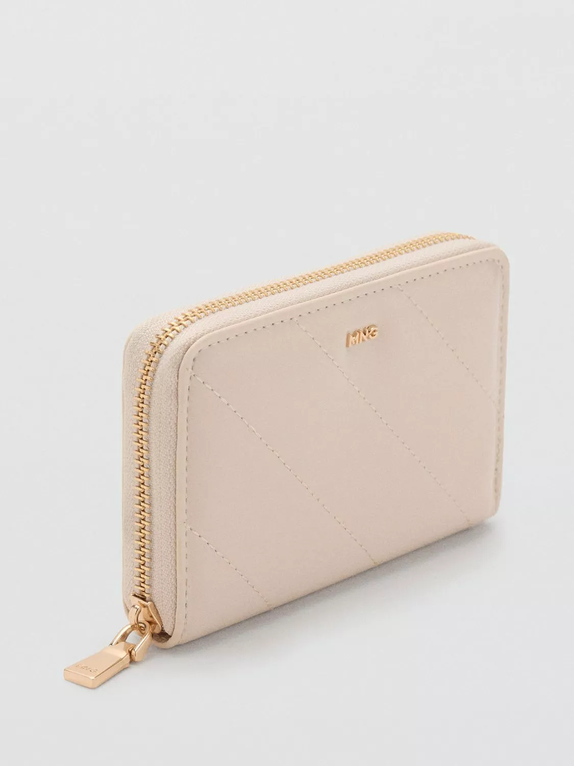 MangoMedium Diagonal Quilted Purse, Natural White
