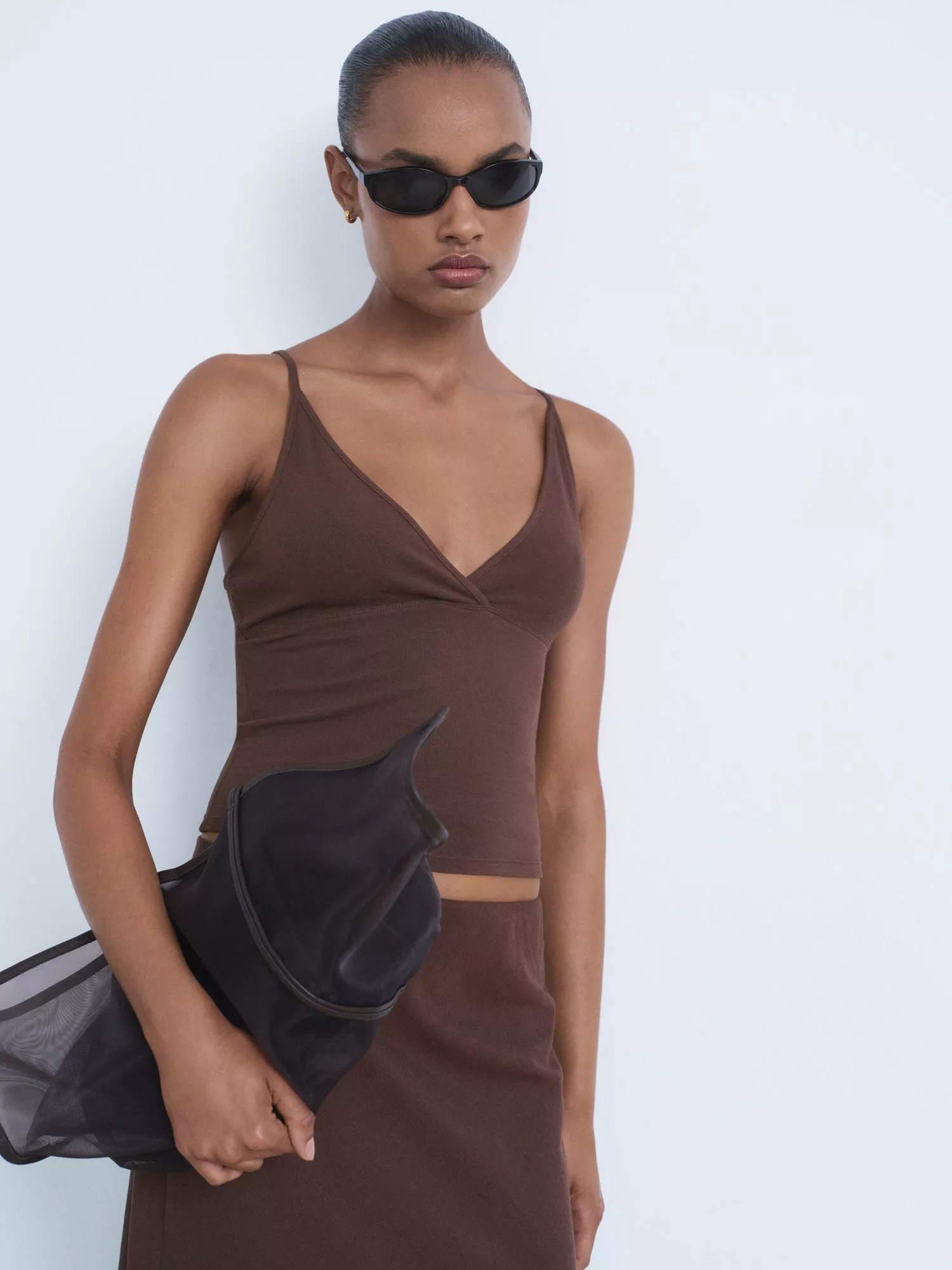 MangoMel Cotton Blend Spaghetti Strap V Neck Top