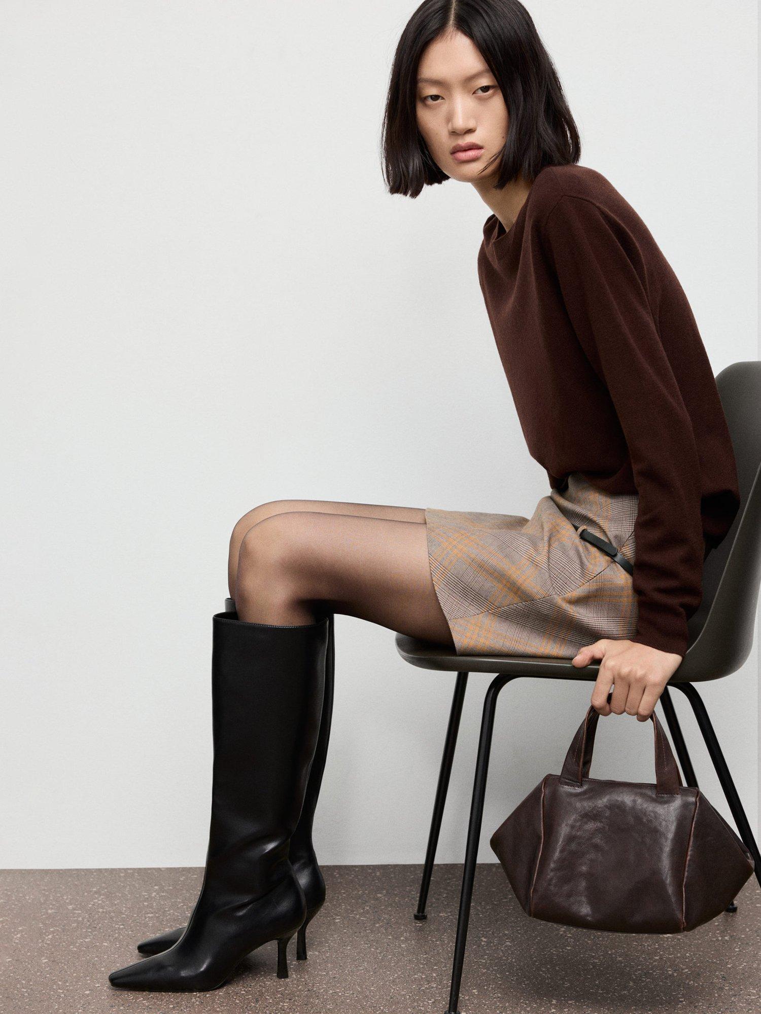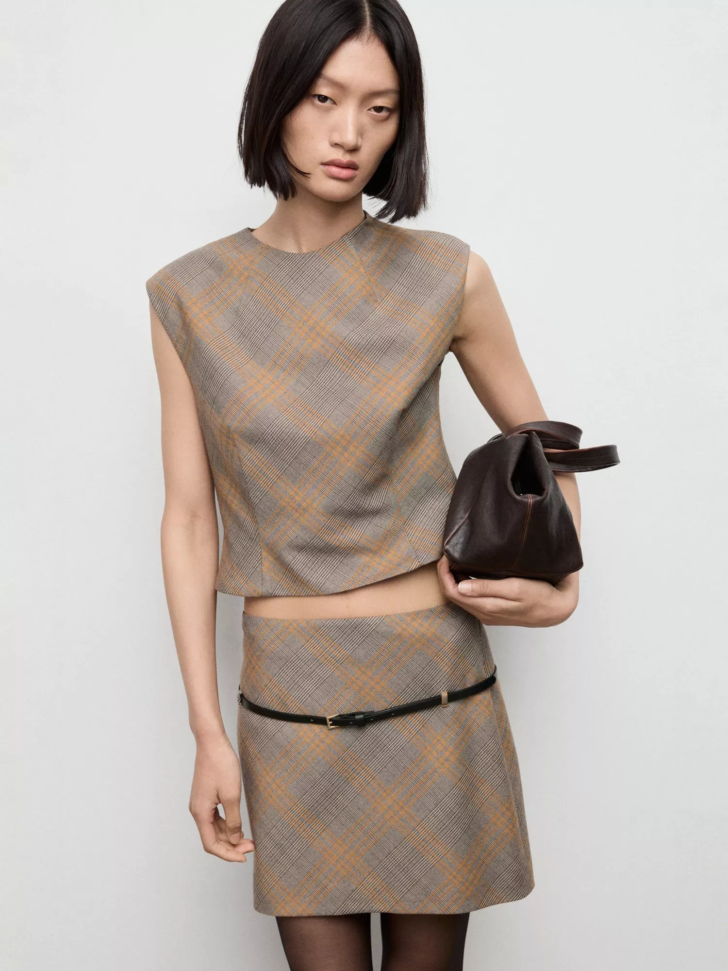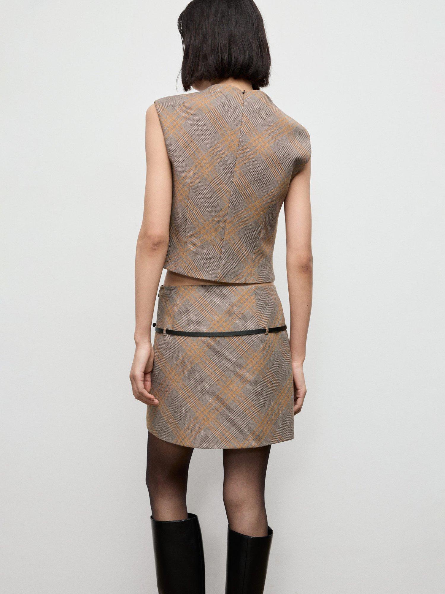 Mini in length, this skirt's by Mango. Carved to a crisp A-line shape with a buckle detail, it's printed in checks. Fastens with a zip.