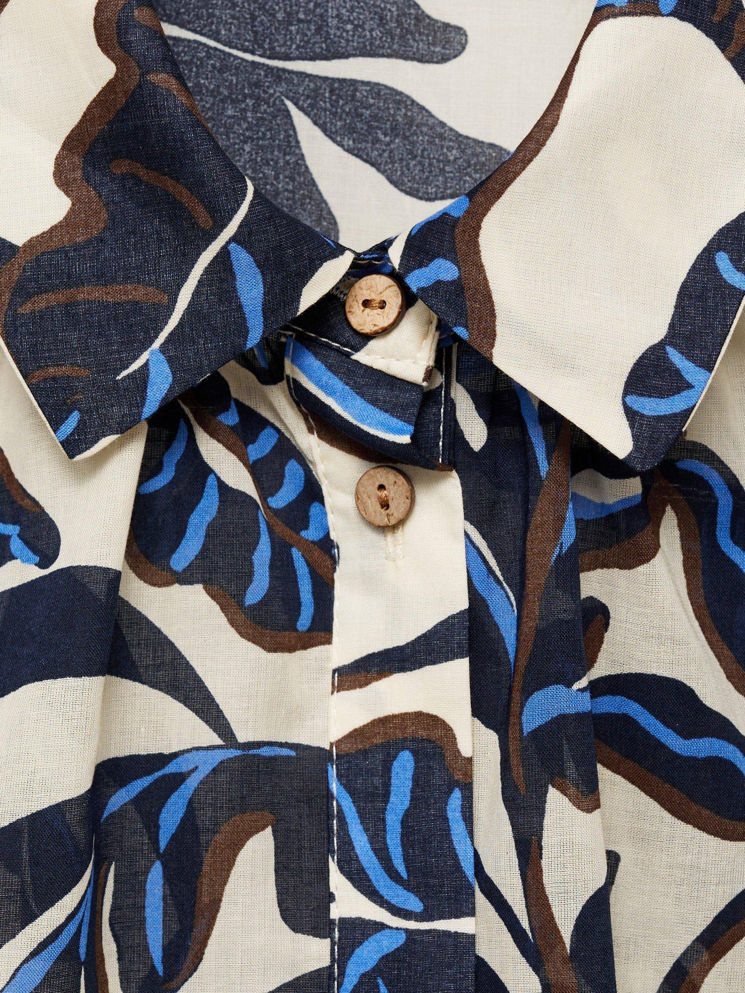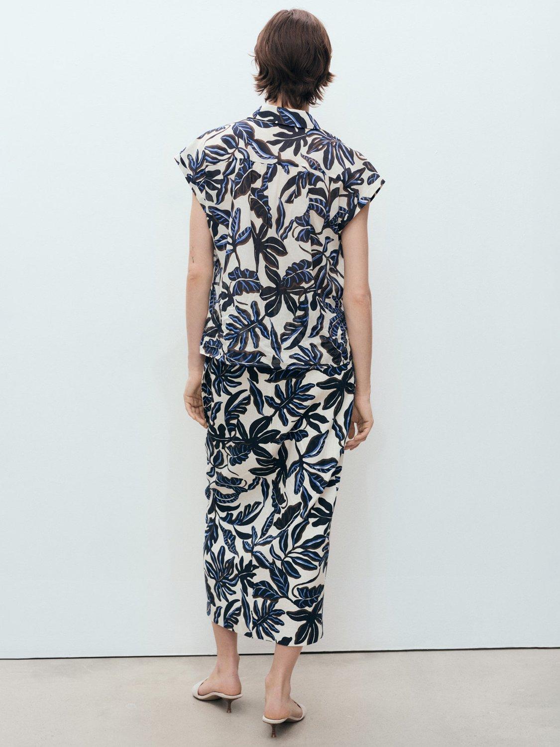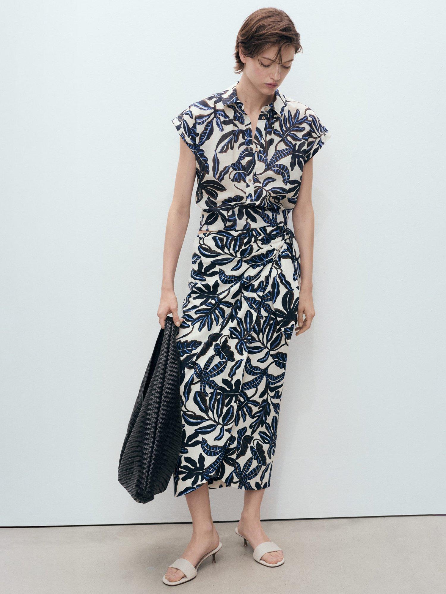 This Mango shirt, crafted from pure cotton, brings effortless charm to your day. With a playful leaves and trees print, cap sleeves, and a smart collar, it’s a clever choice for breezy outings or relaxed gatherings.