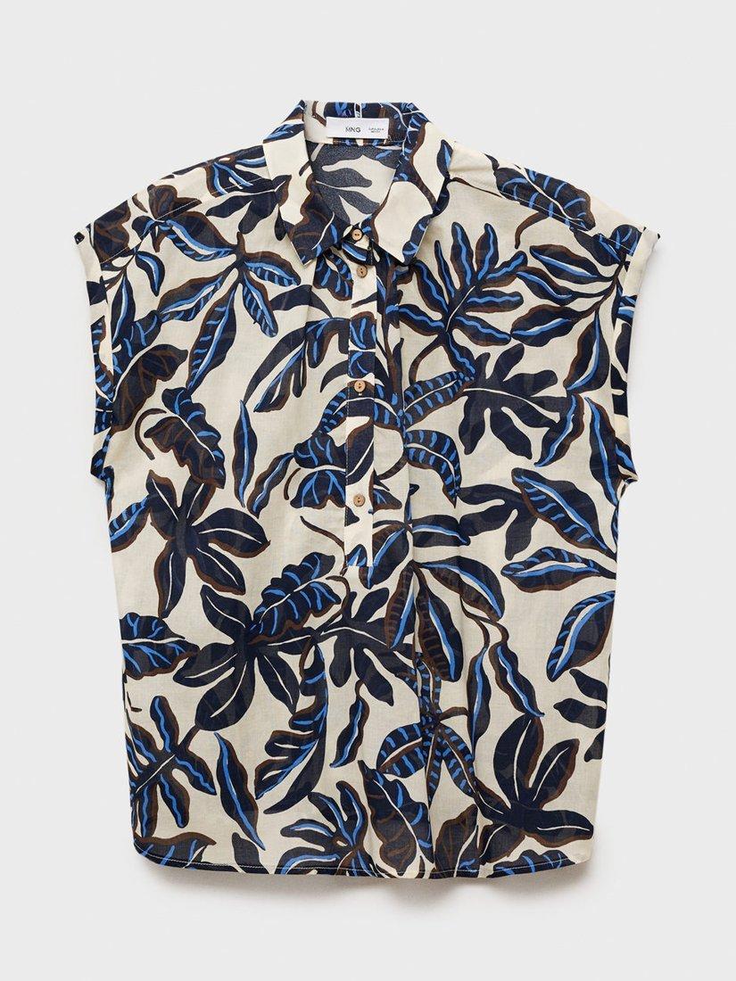 MangoMerci Leaf Sleeveless Shirt, Light Beige/Multi