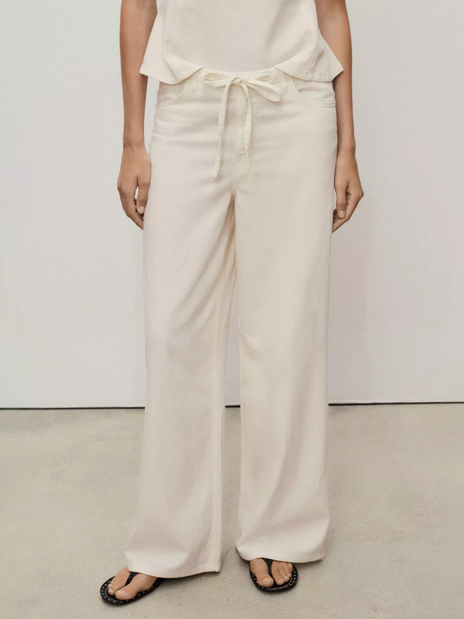 A tailored take on the of-the-moment wide leg trousers from Mango made from a cotton-linen blend fabric. This style features a mid-rise with a practical drawstring waist, offering you style and ease for every day.