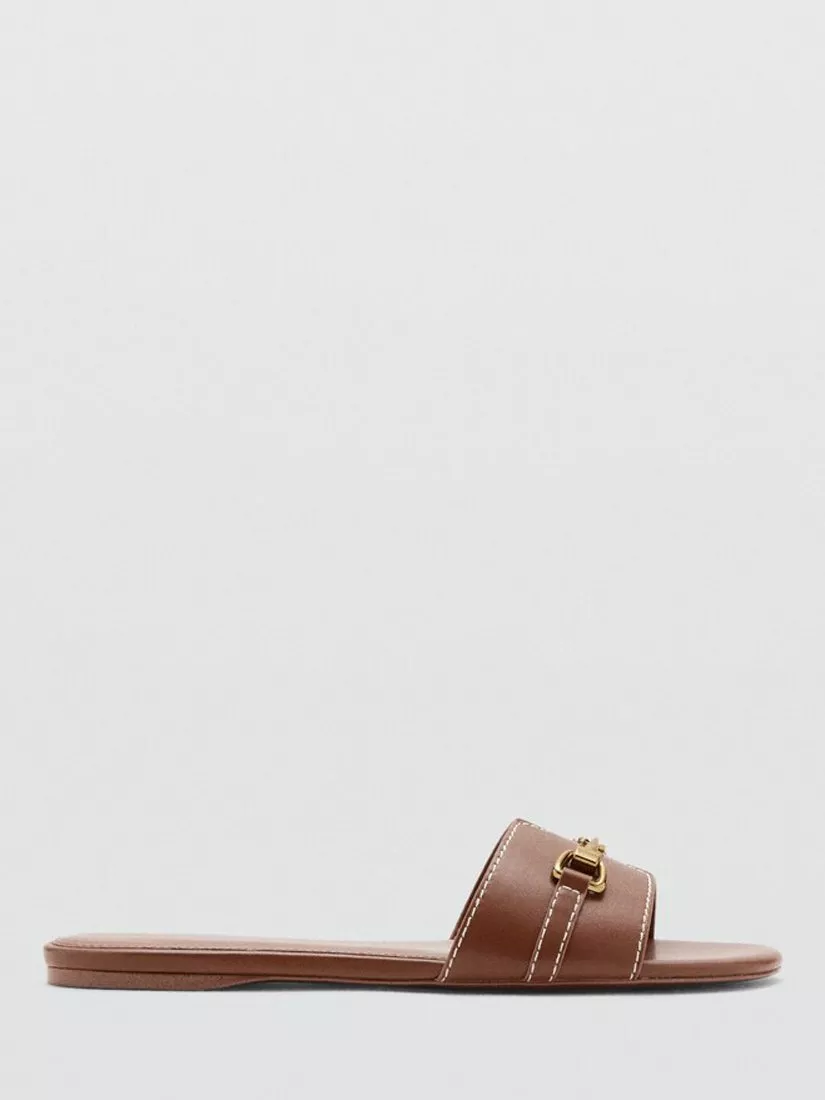 Sliders by Mango with an open toe and slip-on fit, designed with a stitched silhouette and metal hardware accent. Flat cushioned soles keep each step grounded, while streamlined lines offer understated versatility for those who prefer function with a side of flair.